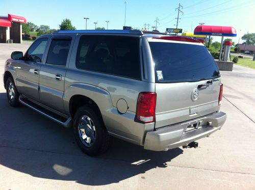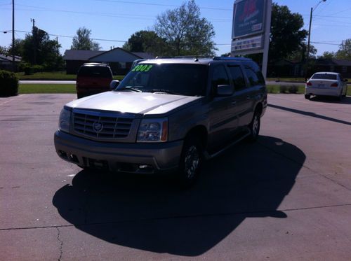 THIS IS A VERY NICE 2003 CADILLAC ESCALADE ESV, ITS ALL WHEEL DRIVE, NICE LEATHER INTERIOR, 3RD ROW SEATING, ALL THE BELLS AND WHISTLES, RUNS AND DRIVES GREAT, ONLY 138145 MILES, THIS IS A NEW CAR TRADE IN. DOES HAVE A MESSAGE DISPLAYED FOR SERVICE STABILITY, HAS REAR AIR SHOCKS LEAKING, OTHER THAN THAT ITS IN GREAT SHAPE, PRICE REFLECTS LIGHT ON IN MESSAGE DISPLAY, EXTENDED WARRANTY AVAILABLE. ANY QUESTIONS FEEL FREE TO CALL, 316-259-6033.