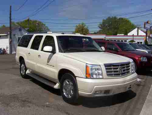 up for auction is this 2005 Cadillac escalade esv 1owner very well kept one minor scratch on left front bumper. car fax shows service regular only at Cadillac, also carfax shows accident in 2010 involving rear impact with no structural damage,car has been driven about 18,000 miles a year and still looks and drive excellent email questions ,we have the right to end auction at any time because this car is also for sale at our location bid to win this one.
