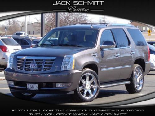 WAS $48,990, PRICED TO MOVE $1,200 below Kelley Blue Book! Moonroof, Nav System, Heated Leather Seats, Third Row Seat, Chrome Wheels, All Wheel Drive, Head Airbag, Quad Bucket Seats, ENGINE, VORTEC 6.2L V8 SFI (E85), Hitch CLICK ME!======KEY FEATURES INCLUDE: Leather Seats, Third Row Seat, Navigation, Sunroof, All Wheel Drive, Quad Bucket Seats, Power Liftgate, Rear Air, Heated Driver Seat, Heated Rear Seat, Cooled Driver Seat, Back-Up Camera, Running Boards, Premium Sound System, Satellite Radio Remote Trunk Release, Privacy Glass, Keyless Entry, Steering Wheel Controls, Child Safety Locks. ======OPTION PACKAGES: ENTERTAINMENT SYSTEM, REAR SEAT, IN-DASH DVD PLAYER with remote control, overhead display, 2 wireless infrared headphones, auxiliary audio/video jacks on rear of center console, sound compression, CD-R and CD-R/W capability, LED backlighting display, MP3 capable, LUXURY PREFERRED EQUIPMENT GROUP Includes Standard Equipment, ENGINE, VORTEC 6.2L V8 SFI (E85) with Active Fuel Management and E85 FlexFuel capability (403 hp [300.5 kW] @ 5700 rpm, 417 lb-ft of torque [562.9 N-m] @ 4300 rpm) (STD). Luxury with GALAXY GRAY exterior and EBONY W/ EBONY ACCENTS interior features a 8 Cylinder Engine with 403 HP at 5700 RPM*. ======EXPERTS ARE SAYING: CarAndDriver.com's review says Cadillac's full-size sport-utility is the super-luxury option for when a GMC Yukon Denali won't do.. ======AFFORDABILITY: Was $48, 990. This Escalade is priced $1, 200 below Kelley Blue Book. Approx. Original Base Sticker Price: $72, 100*. Pricing analysis performed on 6/9/2014. Horsepower calculations based on trim engine configuration. Please confirm the accuracy of the included equipment by calling us prior to purchase. Internet Sales Manager - Dorothy Nugent