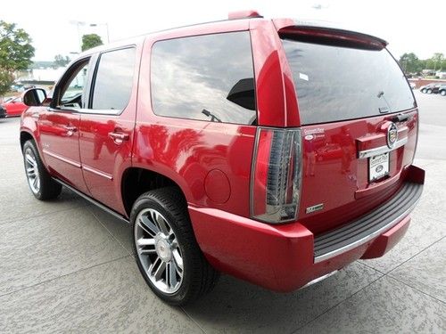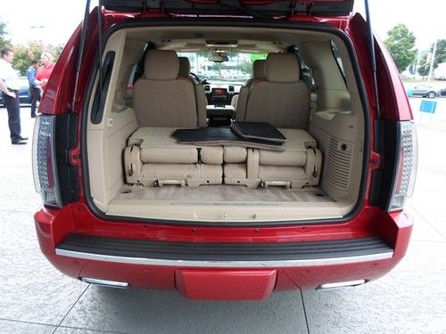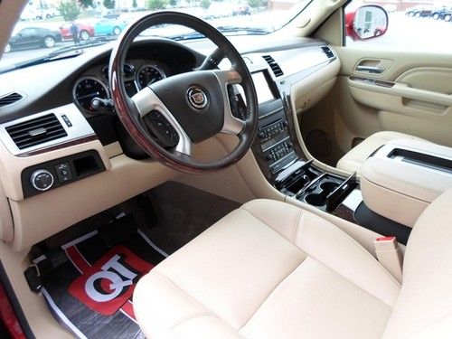 I have for sale a beautiful Cadillac Escalade Premium in Crystal Red with Cashmere interior and only 6,355 miles. Like-new condition - save big over brand new! Magnetic Ride Control Suspension Package, Cashmere w/Cocoa Accents w/Nuance Leather Seating Surfaces, 22" x 9" 7-Spoke Ultra-Bright Aluminum Wheels, 2nd Row Power Seat Release, ABS brakes, AM/FM Stereo w/Navigation, Automatic temperature control, Brake assist, Dual front side impact airbags, Electronic Stability Control, Heated & Cooled Front Bucket Seats, Heated rear seats, Heated Steering Wheel, IntelliBeam Headlamps, Memory seat, Navigation System, Nuance Leather Seating Surfaces, Pedal memory, Power driver seat, Power Tilt-Sliding Sunroof w/Express-Open/Close, Power-Retractable Assist Steps, Preferred Equipment Group 1SC, Rear Seat Entertainment System, SIRIUSXM Satellite Radio, and Speed control. If you've been thirsting for just the right 2012 Cadillac Escalade, well stop your search right here. This superb SUV is the one-owner find that is guaranteed to impress. It is nicely equipped with features such as Magnetic Ride Control Suspension Package, Cashmere w/Cocoa Accents w/Nuance Leather Seating Surfaces, 22" x 9" 7-Spoke Ultra-Bright Aluminum Wheels, 2nd Row Power Seat Release, ABS brakes, AM/FM Stereo w/Navigation, Automatic temperature control, Brake assist, Dual front side impact airbags, Electronic Stability Control, Heated & Cooled Front Bucket Seats, Heated rear seats, Heated Steering Wheel, IntelliBeam Headlamps, Memory seat, Navigation System, Nuance Leather Seating Surfaces, Pedal memory, Power driver seat, Power Tilt-Sliding Sunroof w/Express-Open/Close, Power-Retractable Assist Steps, Preferred Equipment Group 1SC, Rear Seat Entertainment System, SIRIUSXM Satellite Radio, and Speed control.
