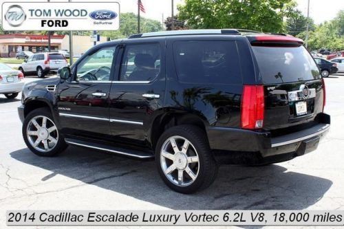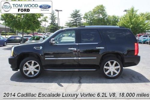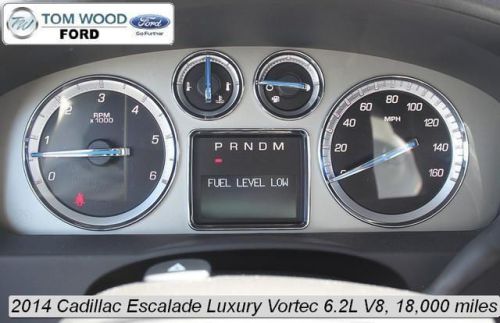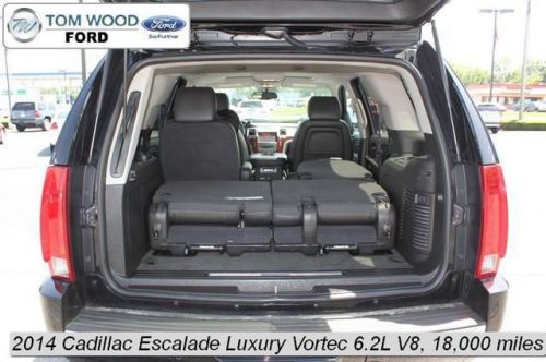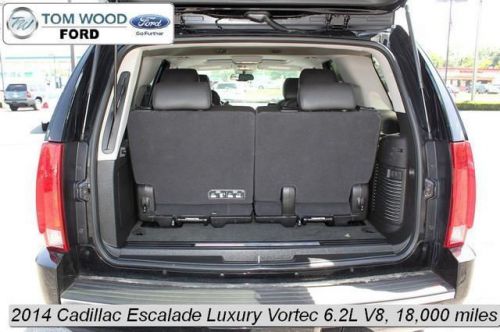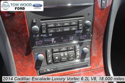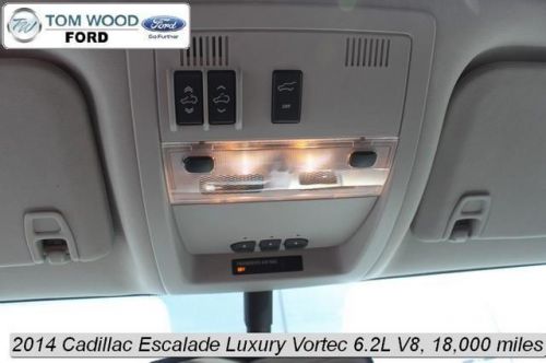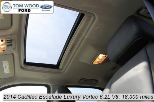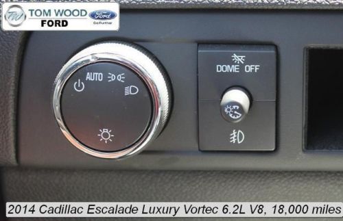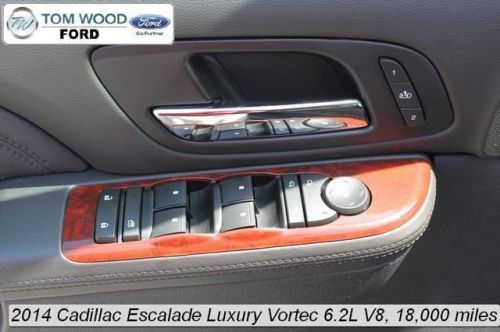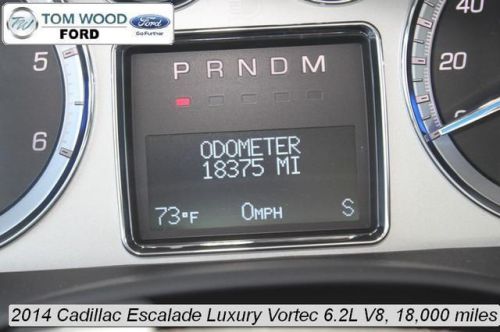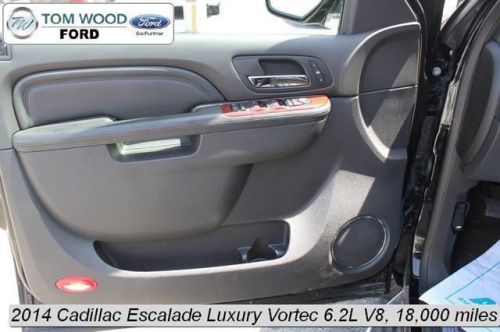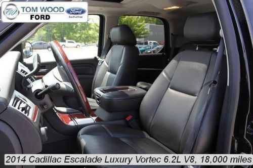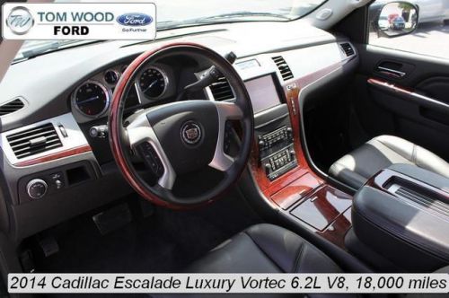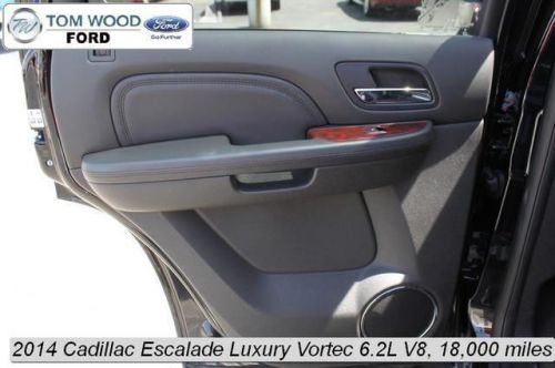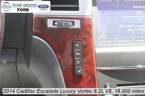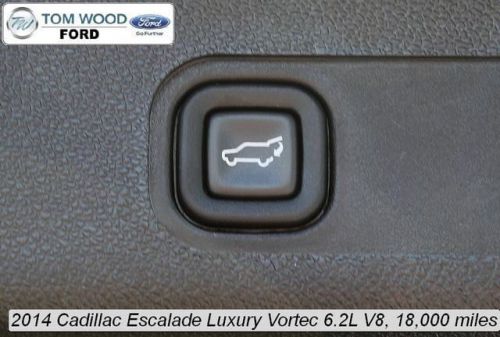 Magnetic Ride Control Suspension Package, Escalade Luxury, 4D Sport Utility, Vortec 6.2L V8 SFI VVT, Automatic, AWD, Black, Adaptive suspension, Auto-leveling suspension, Blind spot sensor, Brake assist, Carfax 1-Owner, Carfax Clean No Accident Vehicle, Dual front impact airbags, Dual front side impact airbags, Electronic Stability Control, Emergency communication system, Front anti-roll bar, Front fog lights, Front wheel independent suspension, Fully automatic headlights, Heated & Cooled Front Bucket Seats, Heated front seats, Heated rear seats, IntelliBeam Headlamps, Leather, Low tire pressure warning, Navigation, Navigation System, Nuance Leather Seating Surfaces, Occupant sensing airbag, Overhead airbag, Power passenger seat, Power Tilt-Sliding Sunroof w/Express-Open/Close, Rear anti-roll bar, Split folding rear seat, Sunroof, Traction control, and Ventilated front seats.