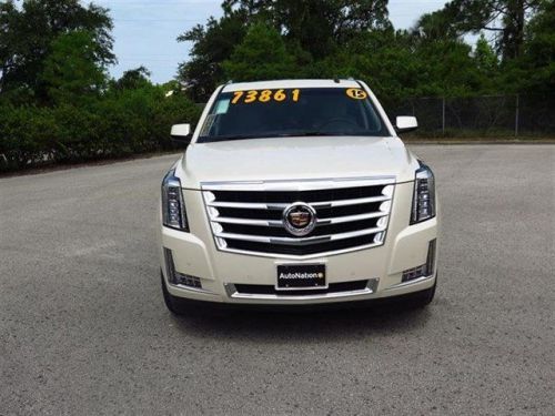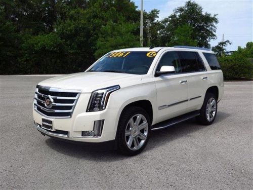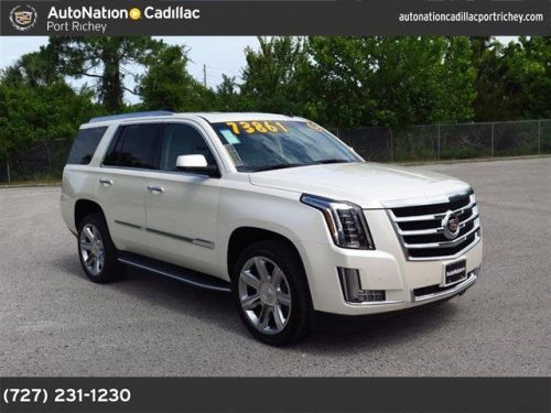 Only the CARFAX Buyback Guarantee can offer you the built-in peace of mind of knowing you made the right purchase. AutoNation Cadillac Port Richey presents this lightly used Carfax One-Owner 2015 Cadillac Escalade Luxury as just one example of our quality pre-owned offerings. Treat yourself to an SUV that surrounds you with all the comfort and conveniences of a luxury sedan. This Escalade Luxury is for the discerning driver who demands the utmost of his vehicle. Added comfort with contemporary style is the leather interior to heighten the quality and craftsmanship for the Cadillac Escalade The Escalade Luxury has a navigation system installed, so you'll always know where you're going. This top-tier navigation system is reliable and will get you to your destination quickly and by the most efficient route available. The easiest choice in purchasing a new vehicle is choosing one with a complete and detailed history like this gently driven pre-owned vehicle. If you are looking for a pre-owned vehicle that looks brand-new, look no further than this Ivory Cadillac Escalade. The Escalade Luxury does not disappoint, and even comes with an Entertainment Package that will impress even the most apprehensive buyer. You'll definitely want to check out this Cadillac. AutoNation Cadillac Port Richey wants you to drive off the lot with the confidence of knowing that your newly purchased Escalade Luxury is still covered under the Cadillac factory warranty. This peace of mind will be truly irreplaceable when purchasing a lightly-used vehicle. A true feat of engineering, this Escalade Luxury has otherworldly acceleration, prodigious power and is accompanied by the prestigious reputation of Cadillac. Although it may not make much sense, this vehicle will undoubtedly provide a memorable experience every time you drive it. Class defining, one-of-a-kind options are the standard with this Cadillac Escalade plus much, much more. With no signs of paint damage, the exterior of this Escalade L Call our Internet Sales Department and Save an additional $200 off the Internet Price listed above.