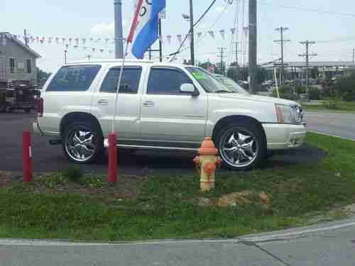 the vehicle being sold is a 2003 cadillac escalade with 24" rims. the truck also comes with a alpine in dash flip out tv and a flip down dvd system for the passengers also has the 3rd row seating. has seperate controls for the heat and air the passenger side heat does not blow out hot like it should this went out a couple months back but i dont drive it much in the winter so never worried about fixing it. first and second row seats heated power locks,windows,seats everything is power this is a fully loaded escalade.