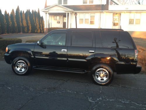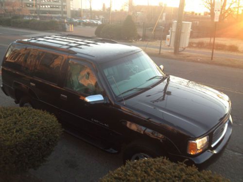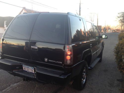BEFORE WE BEGIN MY NAME IS CHRIS HATZIKOSTAS I HAVE BEEN SELLING CARS FOR OVER 15 YEARS. I KNOW YOU SEE MY EBAY ACCT AT 0. I USED TO HAVE A DIFFERENT ACCT IT WAS 350 100%. BUT I AM NO LONGER AT THAT FACILITY. PLEASE GOOGLE MY NAME(+ BRIDGEPORT CT) AND YOU WILL SEED 2 FULL PAGES OF MY CAR SALES AND EBAY ADDS. ALSO P[LEASE BE AWARE THAT I AM A FIRM BELIEVER IN KARMA AND WHAT YOU GIVE IS WHAT YOU RECIEVE. SO HAVE FULL CONFIDENCE IN ME AND THIS PRODUCT. ALSO I WORK AT A MAJOR SUBARU DEALER SHIP IN THE AREA SO IF ANYONE IS STILL A LITTLE WEARY, YOU CAN EMAIL ME AND I WILL GIVE YOU THE NUMBER HERE.(PLUS I PUT A PIC OF MY CARD. OK YOU ARE BIDDING ON A 2000 CADILLAC ESCALADE LOOKS GREAT LOW MILES FOR THE YEAR EXTREMLY RELIABLE!! PAINT ON THE SUV SHINES AND LOOKS GREAT!! LIKE NEW NO SIGNS OF ACCIDENTS NO FADES NO PAINT WORK. LITTLE SCUFF ON THE REAR BUMPER. BESIDES THAT THE BODY IS A 9-10!!! BODY AS WELL LOOKS GREAT NO DINGS OR DENTS 9-10!! SUSPENSION IS GREAT! HANDELS THE BUMPS WELL. NO CRAZY GOOK NOISES NICE 8-9! YOU WILL BE PLEASED! MOTOR IS EXCELLENT NO TICKS NO TOCKS SMOOTH QUIET AND POWERFUL. PLENTY OF LIFE LEFT. DOES NOT BURN OIL. GREAT 9-10!! TRANSMISSION IS EXCELLENT GOES THROUGH THE GEARS PERFECTLY NO BANGS NO BUCKS SMOOTH 9-10!! INTERIOR IS OK, IT IS A TAN COLOR SO YOU SEE SOME WEAR, I THINK I WOULD SAY NORMAL, DASH LOOKS GREAT POWER WINDOWS WORK INTERIOR IS NICE. TVS IN THE HEADRESTS(THEY WORK BUT NOT HOOKED UP) STOCK RADIO. INTERIOR IS 8!!! TIRES IN THE REAR ARE GREAT, THE FRONTS WILL NEED TO BE CHANGED UNDERCARRIAGE VERY CLEAN 9!! STEERING IS GREAT!! OHH 4X4 WORKS GREAT!!! HIT THE BUTTON AND YOU OFF!! GUYS ALL IN ALL A GREAT SUV! WE HAD A TERRIBLE WINTER HERE AND THIS SUV WAS GOING THROUGH THE SNOW LIKE A HOT KNIFE THROUGH BUTTER! PLEASE LOOK AROUND IT IS SO HARD TO GET 4X4 FOR A GOOD PRICE! NOT TO MENTION AN ESCALADE! PLEASE EMAIL ME QUESTIONS THANKS NO RESERVE GREAT SUV!! YOU WILL BE PLEASED