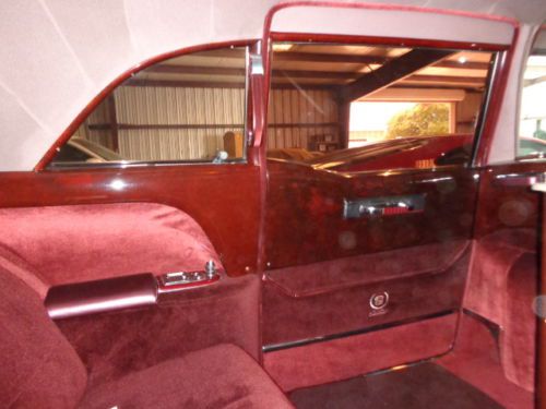 Fabulous 1957 Cadillac Limo From a court ordered liquidation. This Awesome car has a complete custom wood and velour interior that was professionally installed. The fit and finish is Excellent, obviously done by a fine wood working craftsman. The paint is beautiful and the body is very straight, I noticed two small spots on the front of the hood that were touched up. The trunk is beautifully finished is matching materials, the Cadillac logo is hand stitched. The Air Conditioning blows ice cold. The undercarriage is solid and original with no apparent signs of rust and or rust repairs. The original numbers matching engine has just been fully rebuilt, I have reciepts for new; pistons,rings,rod, main and cam bearings The block was boiled, magnafluxed and new freeze plugs installed The crank and cam were polished. The carburator was rebuilt. It runs excellent and starts easily hot or cold and idles excellent. There are no leaks, the steering and brakes are effortless The tires are new radials. We have been in business near the Bush Intercontinental Airport for over thirty-five (35) years. If you have any questions or would like to make an offer, please contact John McMahan at telephone number 832-282-0194 or e-mail him at fineridez@gmail.com. We will help arrange for shipping anywhere in the world. Payment is expected in (U.S. Dollars) cashiers check or wire transfer. We will be glad to work with your bank or credit union. THIS CAR IS SUBJECT TO PRIOR SALE |