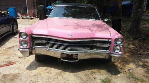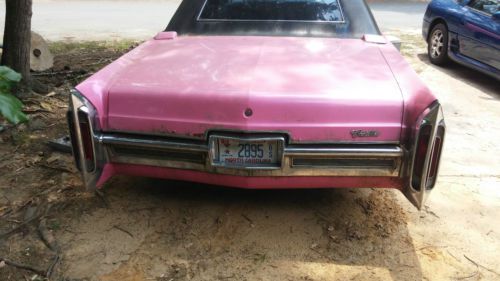 Up for sale is a complete 1966 Fleetwood 75 Limousine with a running 429 GM big block and good transmission. Edelbrock Carb, Color Pink with black top, Does have some rust but nothing to bad. Fuel line from tank to engine is bad so we have an auxiliary fuel line running to a fuel can so it can be run. Interior has 2 or 3 rips in the headliner, ignition needs replace keys were lost, 3 tires hold air 1 does not not sure if the spare will or not but all tire will need replacing. dash has a few crack otn the top side but the rest is in great shape. No rips or tears in seats. Rug is matted under the passengers front feet. fuel tank has a dent were it was sitting on bricks. This car would make a great restoration project.
