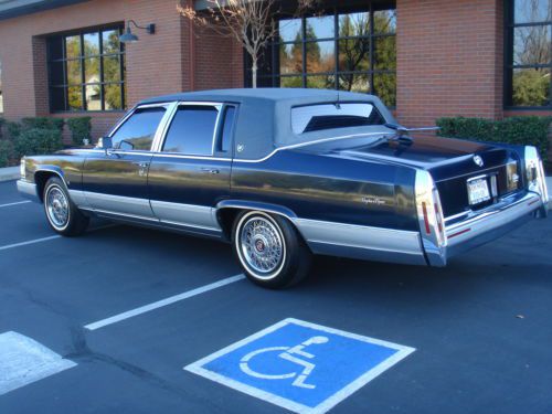 1991 Cadillac Fleetwood Brougham d'elegance mini limo not a stretch its a factory car wheelbase never cut it says S&S on the interior door light lenses so Runs Great Car has BRAND NEW TRANSMISSION HAVE RECEIPT COST OVER $1,600.00 In December, This is a Must see and drive car has 189,131 original highway miles and runs like new, The car also had a new exhaust muffler and resonator just installed and runs super quiet, the car has all options, the only issues with The car was Formerly owned by a San Francisco bank to transport clients and employees to and from the airport. It has a Color TV, video, vhs player remote controlled and cell phone am/fm cd radio premium sound, this Cadillac is in nice condition inside and out, and much much more!! The car is not even detailed thease pictures do not give this car justice. I will set up shipping for buyer and you will not have to worry and stress about it whatever the charge is what I will charge the buyer. I will just add shipping to the total of car. Thank you for your interest in this beautiful Cadillac Brougham. The car has some issues and is not brand new! Passenger power window works slowly, also air conditioner doesn't blow ice cold!!! the padded leather top has a split in it on front driver side windshield and also by the rear back window, and lastly the headliner has some bubbles in it check out the pictures!!!!! and ask any questions you might have the car is sold in as is condition with no warrantees!!!