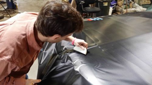 The Wrap on this Cadillac makes it 1 of 1 and Something Special, Check out the Cadillac Logo Embossed on the Trunk. Not a not another one like it anywhere Outstanding Show Car! Carbon Caddy Cadillac Fleetwood 390 V8 new Edelbrock Carburator, New Dual Upgrade on Breaks, New Water Pump, New Heartthrob all welded Exhaust for that classic sound. Radiator and intake manifold restored. New filter in Transmission. New Interior,Carpets and Headliner, All Window Motors work. Lots of extra parts. Good Tires. Runs and Drive Smooth!This car was professional wrapped by a 3M Vinyl Professional. The Vinyl Pattern is Black Carbon Fiber! more pictures at www.carboncaddy.us The Doors have been shaved but door handles and Mirrors. can be replaced easily if you want a traditional look. Call 952-451-2104