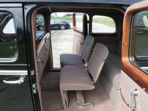 HEAD V-16 FLATHEAD • 141.3 INCH WHEELBASE • WIDE WHITE WALLS • 3 SPEED MANUAL COLUMN SHIFT • CORRECT DATED SAFETY GLASS • RARE CORRECT VOLTAGE REGULATOR • TWIN JUMP SEATS • BEAUTIFUL GREY WOOL UPHOLSTERY