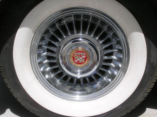 EXTERIOR THIS CADILLAC ELDORADO SEVILLE IS STRIKING WITH ITS WHITE PAINT, BLACK VINYL TOP, WIDE WHITE WALL TIRES, AND ORIGINAL "RARE" SABRE WHEELS. THE PAINT WAS REDONE SOME TIME AGO, BUT STILL HAS A GOOD SHINE.