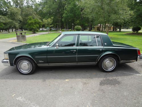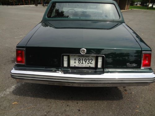 THE CADILLAC IS IN GREAT CONDITION FOR A 38 YEAR OLD VEHICLE. VINYL TOP IS IN GREAT CONDITION, ALL THE WINDOWS HAVE STRONG MOTORS AND WORK CORRECTLY, THE A/C STILL WORKS GREAT, ORIGINAL FLOORMATS AND INTERIOR THAT IS ALSO IN GOOD CONDITION. EVERYTHING APPEARS TO BE FACTORY AND THE BEST I CAN TELL FROM THE HARDLY LEGIBLE NOTES, THE CADILLAC WAS REPAINTED THE ORIGINAL GM PAINT CODE 39 (KINGSWOOD GREEM) (IRID) IN LATE 1992. THE PAINTWORK IS GREAT AND DOESN'T HAVE ANY FLAWS WHATSOEVER. HEADLINER IS IN GREAT CONDITION, RADIO ANTENNA STILL POWERS UP AND DOWN, SPARE IS INCLUDED AS WELL AS THE GENUINE GENERAL MOTORS TIRE INFLATOR CAN THAT CAME FACTORY WITH THE CADILLAC. MOTOR RUNS STRONG WITH NO ISSUES (I BELIEVE IT DOES HAVE A SMALL OIL LEAK COMING FROM THE BREAKDOWN OF THE VALVE COVER GASKET) GOOD SHAPE MICHELIN TIRES, NO RUST ON THE CADILLAC AND LOOKS GREAT. THE TRUNK LOCK COVER IS MISSING, ALSO THE REAR PLASTIC ABOVE THE REAR BUMPER HAS A FEW CRACKS IN IT AS SEEN IN PICS. ALL THE OWNERS MANUALS ARE INCLUDED AS WELL. OVERALL THE CADILLAC IS IN GREAT CONDITION, IT HAS WON BEST OF CLASS A COUPLE TIMES AT SOME SHOWS IN THE KNOXVILLE AREA. CLEAN CLEAR TN TITLE, PLEASE EMAIL WITH ANY QUESTIONS. I WILL HELP WITH SHIPPING IF BUYER CHOOSES TO HAVE THE VEHICLE SHIPPED. PLEASE ASK QUESTIONS BEFORE BIDDING AND HAVE FINANCES READILY AVAILABLE. THANKS AND GOOD LUCK |