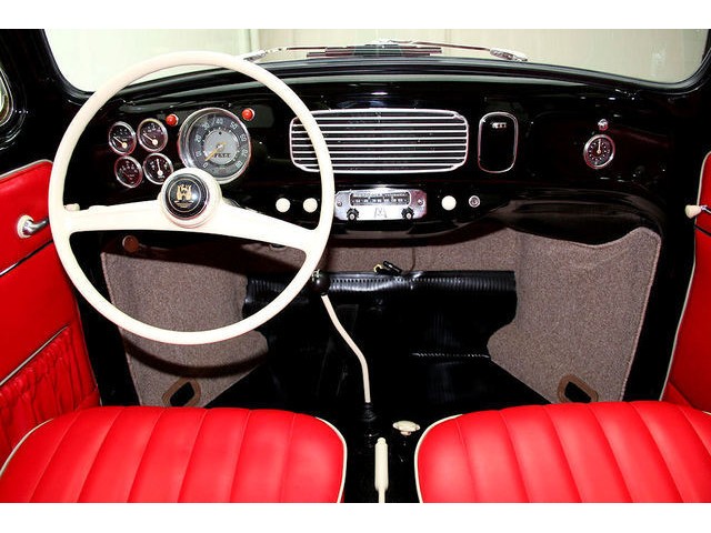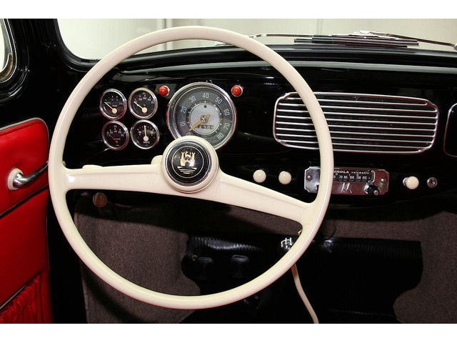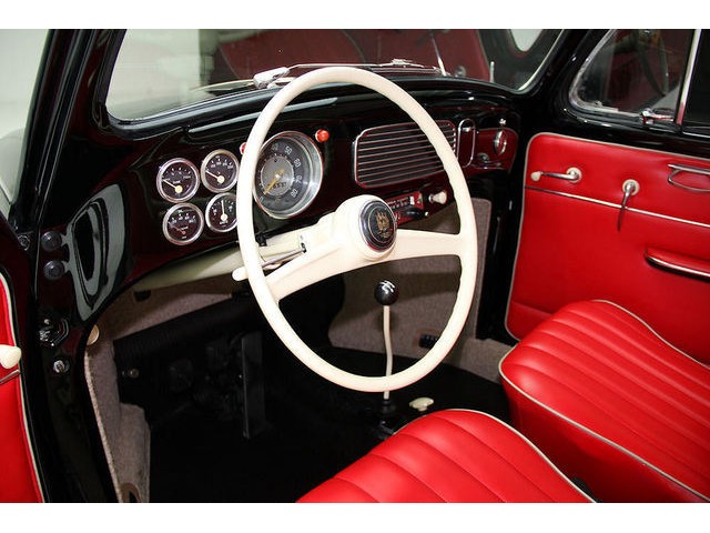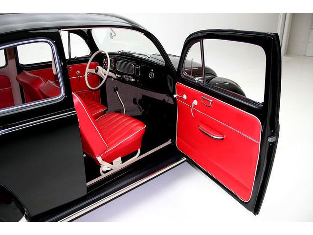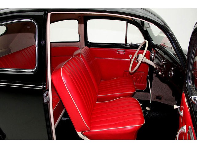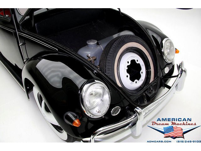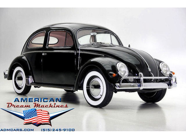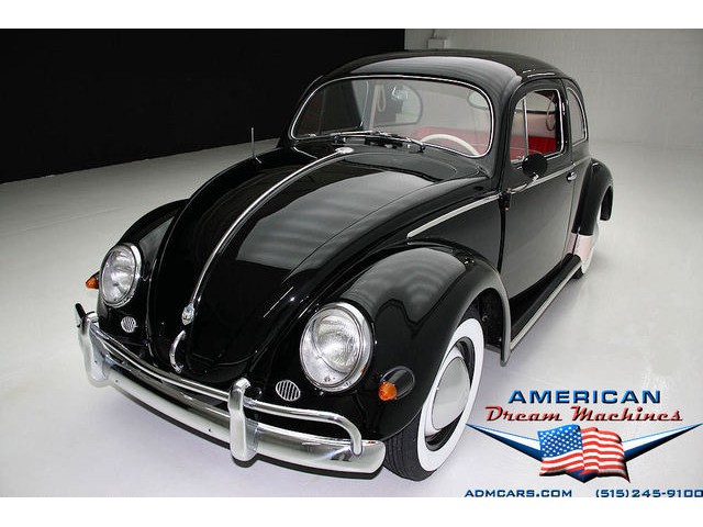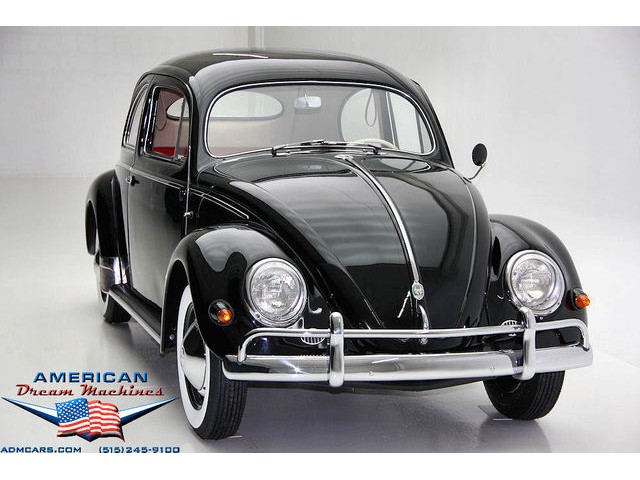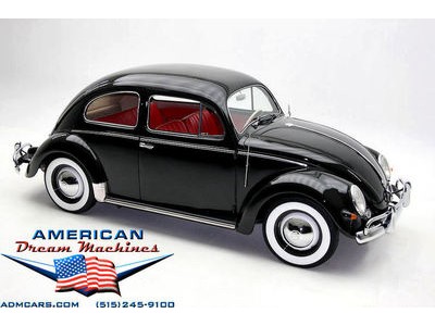 NEW LISTING!!!THIS CUTE LITTLE BLACK BUG WITH NEW RED INTERIOR WILL MAKE YOU SMILE :-) VERY RARE PORT HOLE WINDOW WITH GREAT COLORS AND OWNER HISTORY!!! LAST YEAR FOR THE OVAL REAR WINDOW. ONE OWNER, EXTENSIVE RESTORATION!!! SHOW STOPPER, ROLLING ON BRAND NEW WIDE WHITES. AMAZING RARE FIND!!!ONE OWNER, EXTENSIVE RESTORATION. One owner Onyx Black 1957 Volkswagen Beetle. This VW was meticulously restored by its original owner after enjoying it for 57 years. The owner choose to add gauges to better monitor the car and a wind up clock which was installed in the glove box door. The Beetle was undercoated by the selling dealer when it was new so the floor pans are in great shape. The body was stripped and completely repainted inside and out then polished to a deep and beautiful shine. All of the exterior chrome and trim has either been replated or replaced with new. New windshield with new seal. All other glass was polished then reinstalled with new rubber parts. Completely rebuilt engine with only 25 miles since completion and it runs like a clock. The interior features new seat upholstery, door panels, carpet and headliner. The brakes and suspension have been upgraded with all new parts. The perfect finishing touch is the painted factory wheels, new hubcaps and period correct new wide whitewall tires. Rare car and a rare opportunity to own a piece of automotive history. Thank you for you interest in our cars at American Dream Machines. This car is a new acquisition and we are currently in the process of getting this car ready and we will be posting pictures and detailed information of this vehicle to the web site soon. Thank you for your patience. Vin# 1433339 (((PLEASE CALL FOR DETAILS))) American Dream Machines is located in the center of the Heartland in Des Moines Iowa. We are one of the largest full service classic car dealerships in the Midwest. We specialize in American Muscle cars with integrity. We usually have at least 100 cars in stock. Please call 515-245-9100 and we will be happy to tell you about the cars.  Des Moines largest classic car dealership, ''Specalizing in American muscle cars with Integrity.''