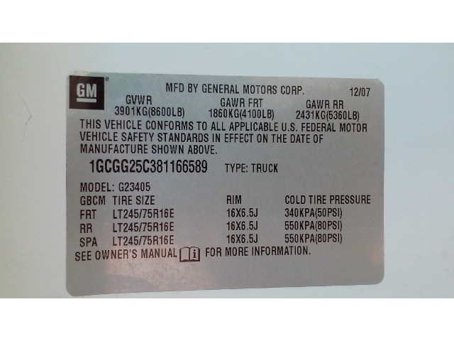 • VIN: 1GCGG25C381166589