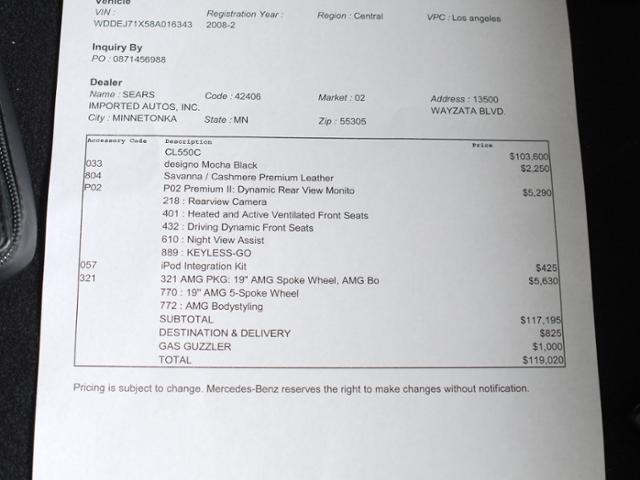 2008 CL550 Coupe AMG Package Designo Mocha Black 8k