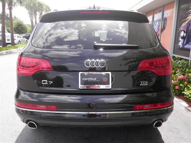 A 2013 Audi Q7 TDI Diesel All Wheel Drive SUV. It is stunningly beautiful and extremely functional with powerful turbo Diesel fuel economy in a 7 passenger vehicle. Car Fax verifies no accidents and there is remaining factory warranty plus the Audi Certified Pre Owned extended benefits up to 100000 miles.