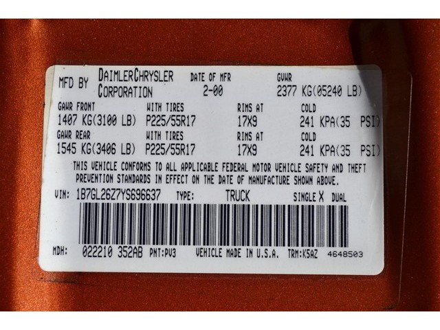 • VIN: 1B7GL26Z7YS696637