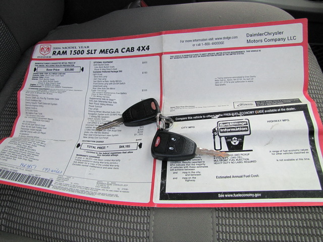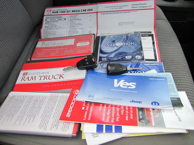 With only one previous owner, this LUXURY  LIFTED  2006 DODGE RAM 1500 SLT 4x4  MEGA CAB  is ready for you. 3 months /3000 miles POWERTRAIN  WARRANTY ! JUST SERVICED ! NAVIGATION SYSTEM !DVD SYSTEM ! SUNROOF ! This is a smoke-free automobile.There is no damage evident on this vehicle.This is a garage kept vehicle.The engine on this vehicle is running properly.This vehicle has no known defects.The mileage represented on this vehicle is accurate.There are no signs of prior damage on this vehicle.This vehicle has a smooth shifting transmission.All power equipment is functioning properly.Overall, this vehicle's exterior is clean.The interior is clean and in good condition.There is approximately 85% of the tire tread remaining.