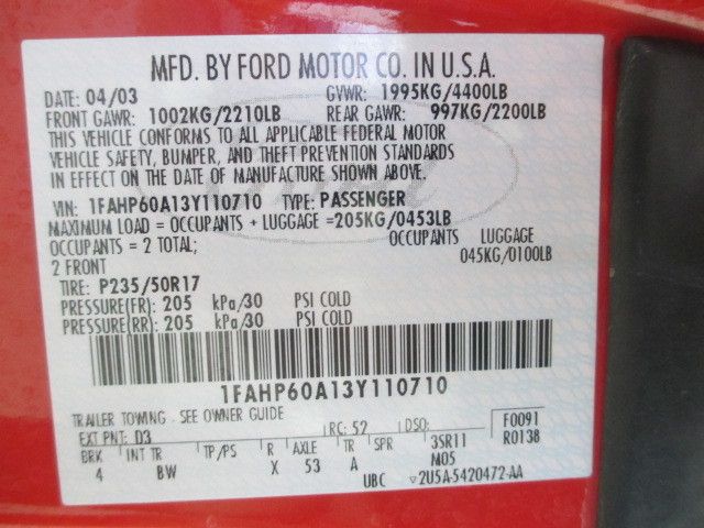 • VIN: 1FAHP60A13Y110710