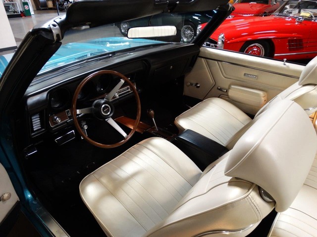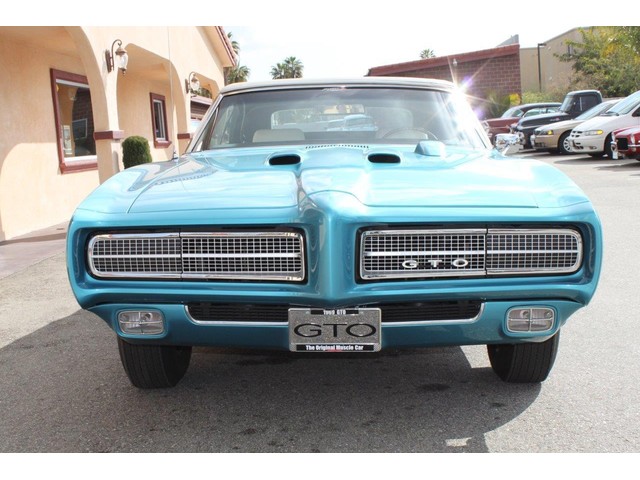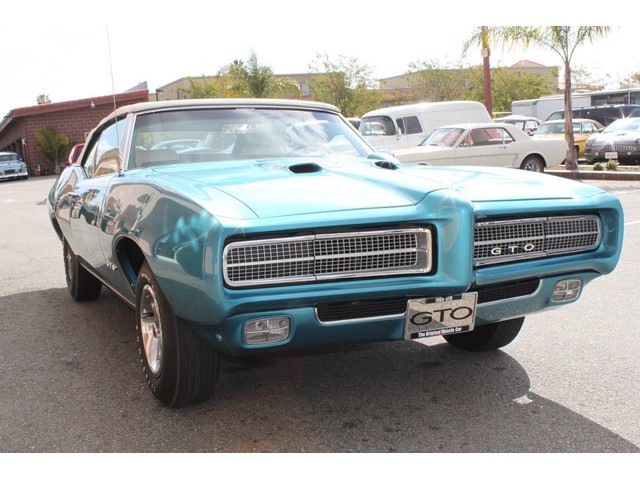 We are pleased to offer this 1969 Pontiac GTO Convertible. This car was the recipient of a frame off restoration to stock specification with the addition of the hood tach and the ram air. The car is documented with PHS and was very well equipped with the turbo-400 automatic, 3.55 posi-traction rear end, power disc brakes, rally clock, deluxe tilt steering wheel, hideaway headlights, console, rally gauges, power trunk release, power convertible top, power steering, remote outside mirror, 5 rally II wheels, polyglas tires, rear spoiler and more. The car was rotisserie restored and is a numbers matching vehicle, featuring a laser straight body highly detailed throughout including the undercarriage. It is also finished in its original color combination of crystal turquoise over a pearl white interior and a white convertible top. This car is equally ready for the concours field or the open road. Please contact us at mark@crevierclassiccars.com or 714-426-0238