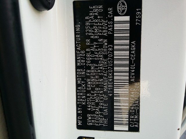 VIN: 4t1be46k07u570783   Interior Color: Gray
