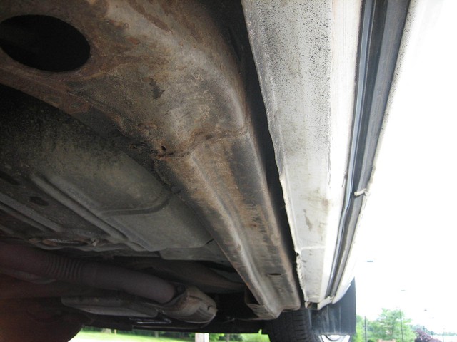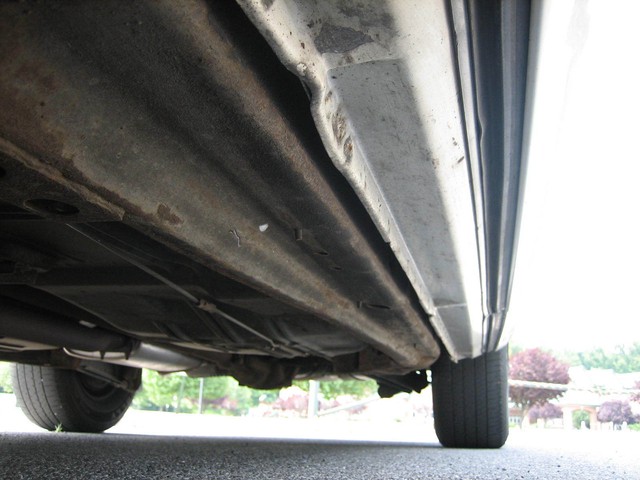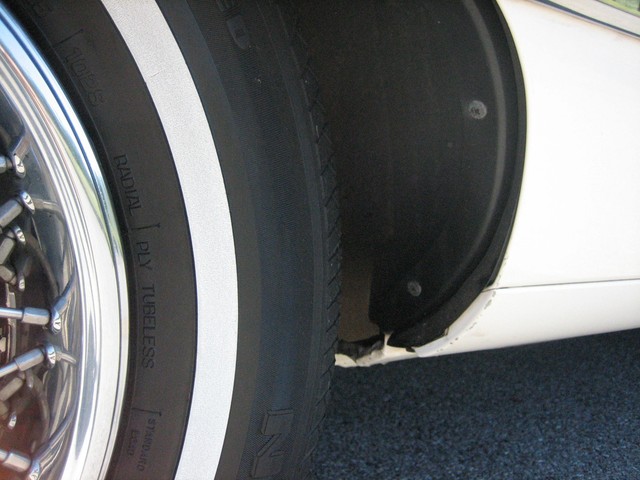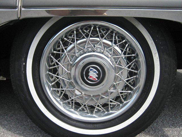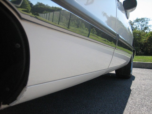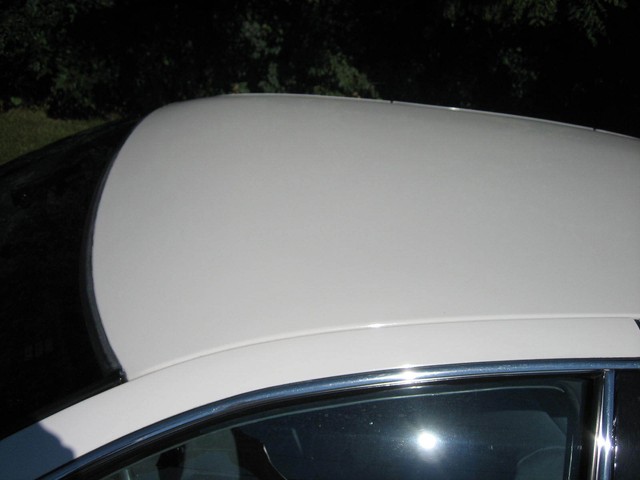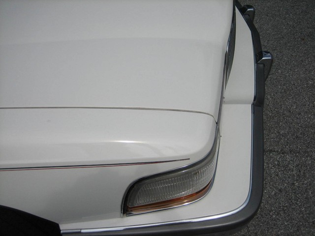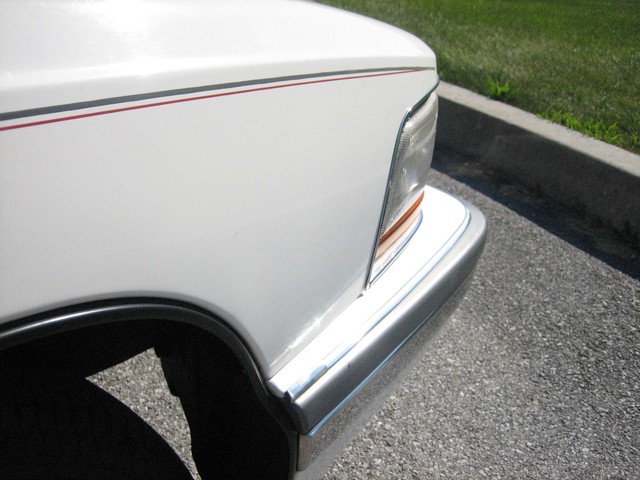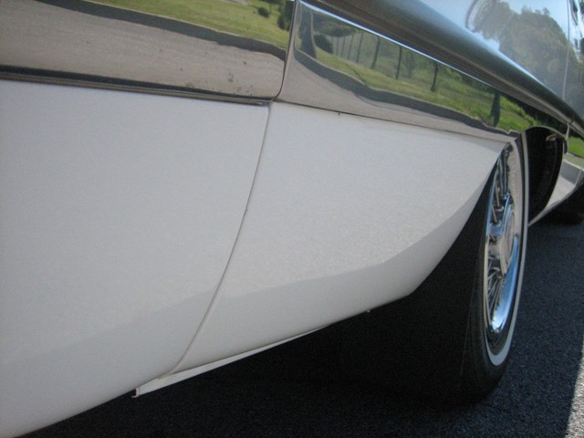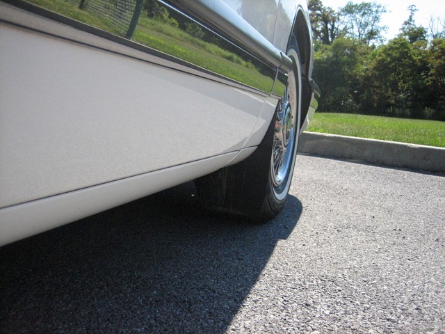 The paint appears to be mostly original - it is a beautiful Arctic white, with contrasting hand-painted pin stripes on the sides.  The paint reflects the fact it was garage kept most of its life.  The chrome and the stainless steel also shine well.  The wire wheel discs are in excellent shape; however there is some “curb rash” on the right front hubcap.  You probably cannot tell from the pictures, but there are a couple very small indentations on the top of the drivers side front fender (perhaps from a mechanic leaning his elbows on the fender panel?) as well as one on the passenger side rear door; however I did not even notice these until after I bought it….they just are not that noticeable!  Also, the driver’s side pinstripes are beginning to fade in certain areas, which you can probably tell from the pictures.  Nonetheless, the exterior is beautiful and is obvious of the care it has received.  The only flaws on the exterior are trivial – nothing worthy of mention.  There is no rust anywhere on the body, under the doors, or under the trunklid.  The undercarriage is extremely solid and appears to have only minor “surface scale” in places here and there – no rust-through anywhere.  I highly doubt the car ever saw salt or snow.
