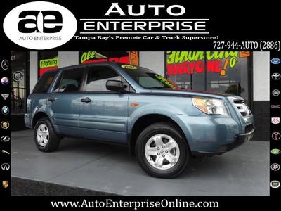 2007 HONDA PILOT LX SUV-3.5L V6 WITH AUTOMATIC TRANSMISSION 84K MILES POWER WINDOWS POWER LOCKS REMOTE KEYLESS ENTRY CLOTH INTERIOR AM/FM CD PLAYER WITH PREMIUM SOUND CRUISE CONTROL 3RD ROW SEATING ICE COLD AIR CONDITIONING REAR AIR CONDITIONING PREMIUM ALLOY WHEELS CLEAN AUTOCHECK WITH NO ACCIDENTS! WE SERVICE WHAT WE SELL! WE HAVE A FULL SERVICE FACILITY PROVIDING YOU WITH ANYTHING YOU NEED FROM OIL CHANGES TO FULL ON AUTO REPAIR! WE ALSO CAN EQUIP YOUR NEW VEHICLE WITH WHEEL & TIRE PACKAGES LIFTS STEREOYOU NAME IT WE CAN DO IT OR HAVE IT DONE! WE HAVE FINANCING FOR EVERYONE! YOU ARE APPROVED & EXTENDED WARRANTIES AVAILABLE! *TRADE INS WELCOME* CALL 727-944-AUTO(2886) AUTOENTERPRISE *BUY-SELL-TRADE* 6901 US19 NEW PORT RICHEYFL 34652 WWW.AUTOENTERPRISEONLINE.COM Visit Auto Enterprise online at www.autoenterpriseonline.com to see more pictures of this vehicle or call us at 727-944-2886 today to schedule your test drive.