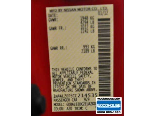 • VIN: 1N4AL2EP3CC214535