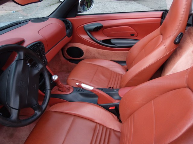 With only one previous owner, this automobile is ready for you.This is a smoke-free automobile.There is no damage evident on this vehicle.This is a garage kept vehicle.The engine on this vehicle is running properly.This vehicle has no known defects.The exterior of this vehicle is extra clean.Extra clean interior.Softop is like new, no rips or fraying. Absolutely no rips, odors or abuse.There is approximately 75% of the tire tread remaining.The mileage represented on this vehicle is accurate.DRIVEN ONLY 7000 MILES PER YEAR!!!!! This is the sport model with the most desireable color combination, silver over boxster red!! Absolutely pristine,fully stamped service records until 82k. Must be seen!! The car is in Great Neck NY 11021There are no noticeable dings on the exterior of this vehicle.This vehicle has a smooth shifting transmission.All power equipment is functioning properly.An absolute pleasure!!