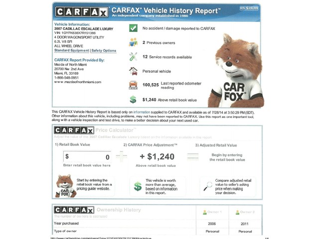 2007 ESCALADE AWD 4X4 NAVI REAR DVD CARFAX CERTIFIED SPOTLESS FLORIDA BEAUTY