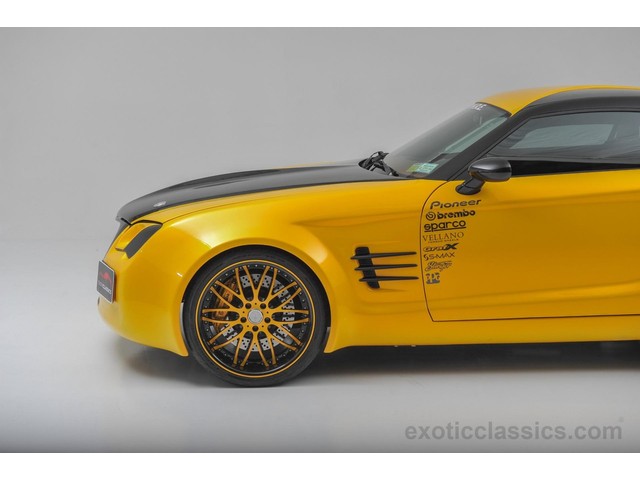 2004 CHRYSLER CROSSFIRE CUSTOM Exotic Classics is pleased to present this stunning and highly modified 2004 Chrysler Croosfire. The car has been rebodied as a show and road car. It was originally developed as a showcase for Pioneer Stereo equipment.The Chrysler Crossfire was a collaboration between Daimler Benz and Chrysler using a Mercedes chassis, 3.2L V6 engine and running gear. It combined American styling and German engineering and was in production for four years.Modifications to this car include:Custom wide-body in fiberglass20" three piece Vellano wheelsBrembo brake systemFerrari tail light conversionInterior in Alcatra and Porsche triplestitched copper and black premium leatherPPG pearl yellow/black custom paint finishTwin turbo installationTwin intercoolersNitrous (not connected)Electronic keyless door opener/safety switch under hood.Pioneer Show Sound SystemAVD W 8000 8" in dash monitorXVD D6 head unit2 x12" Premiere Champion subwoofers2 sets of Premiere 6 1⁄2 component speakers1 set of Premiere 5 1/4 component speakers2 x PRS 900 AMP 2 x PRS D1200 SPL ampPioneer P8000 PRSSince 2010, the most recent owner has invested $12,000 to make it a more tractable road car. This work was done by HRE Motorcars of Freeport, famous specialists in Cobras/Daytonas/GT40s and high end performance cars. The car is comfortable, sounds great, and turns heads everywhere. You can drive it or show it with confidence and pride.