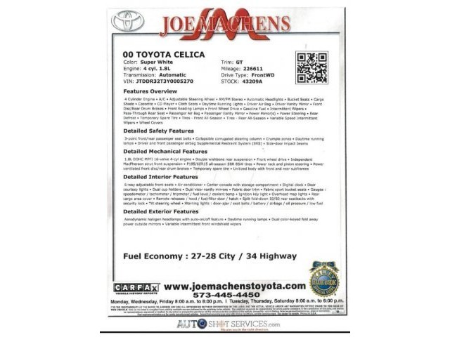 2000 Toyota Celica GT Coupe 1.8L automatic