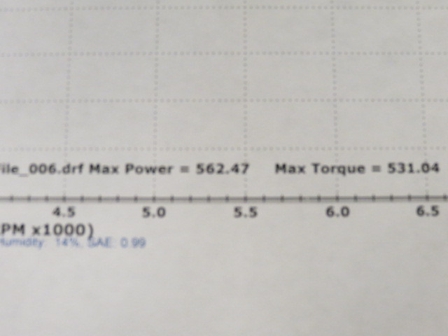 Check the Dyno sheet in the pictures 562 HORSEPOWER 531 FTLBS OF TORQUE!!!
