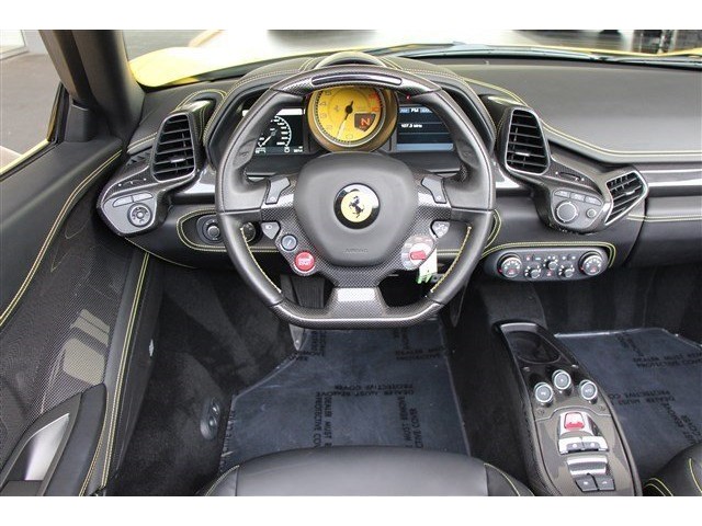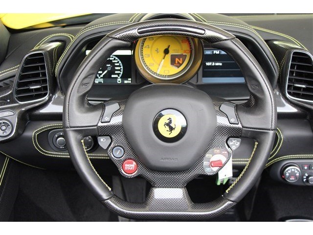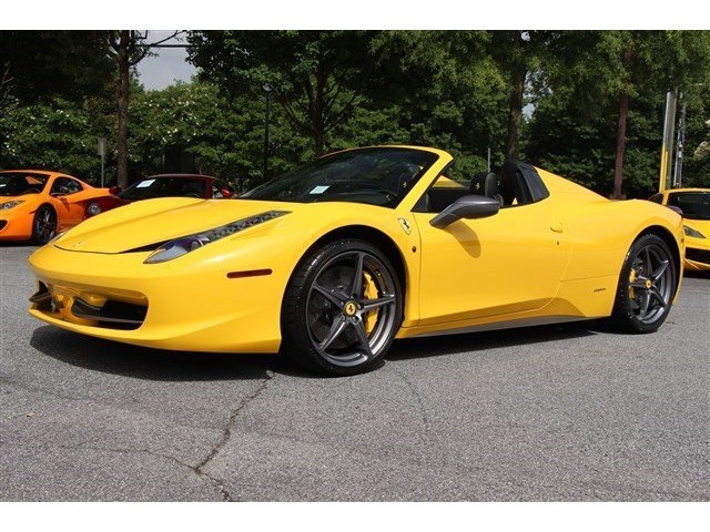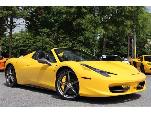 MOTORCARS OF GEORGIA IS EXCITED TO PRESENT A LIKE NEW, 1-OWNER 2013 FERRARI 458 ITALIA SPIDER COLORED IN GIALLO MODENA (YELLOW) OVER NERO (BLACK) LEATHER INTERIOR.  COLLECTOR CARS SUCH AS THIS POSSESS A MINT OWNERSHIP HISTORY AND ARE OFFERED IN PRISTINE CONDITION WITH ABSOLUTELY NO EXCUSES.  WE TRADED THIS CAR FROM A GREAT CUSTOMER OF OURS WHO BOUGHT THE CAR NEW AND RECENTLY TRADED FOR AN AVENTADOR ROADSTER.  561HP, 7-SPEED DUAL CLUTCH TRANSMISSION, F1 TRACTION CONTROL, AND 7 -YEAR GENUINE MAINTENANCE CONTRACT ALL MAKE THIS CAR A SERIOUS CONSIDERATION IF YOU ARE IN THE MARKET.  NOT SURE.....CHECK OUT THE OPTIONS LIST AND PHOTO GALLERY TO APPRECIATE.