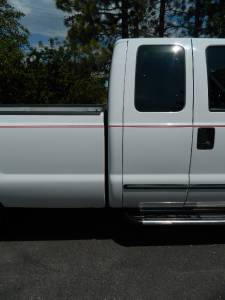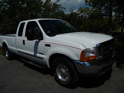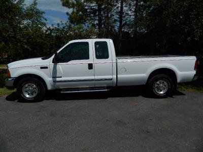 This truck is a 2000 Ford F-250 Superduty.  It has the extended cab with the rear doors that open and a long 8' box.  It has the 7.3 Liter Powerstroke Diesel engine and an Automatic Transmission.  It is the XLT model with A/C, cruise control, power windows and door locks, Cassette player with am/fm radio,  remote door opener, and power drivers seat.  It has 63,627 original miles on it. It is a 2 wheel drive.  This is a ONE owner truck. The man who owns it is 88 years old and just used is for pulling his camper in the summer and has been maintained perfectly! I have the service records for it since it was new.  The tires are almost new 10 ply Yokohama Geolanders with less than 5k miles on them.  It does have a flip over goose neck hitch in it.
