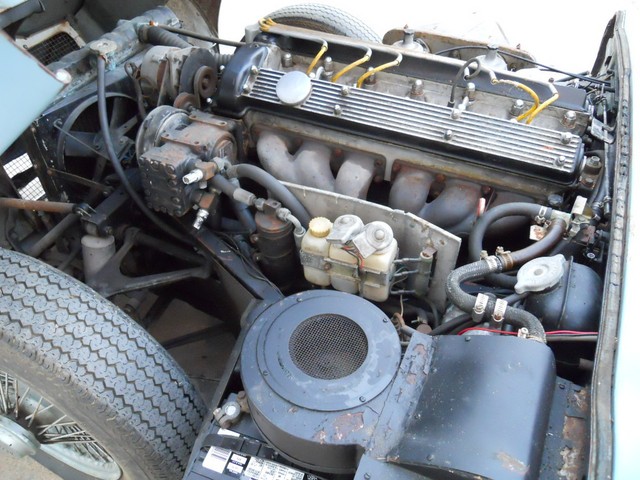 The motor oil is clean and full, coolant tank looks clean and full as well. The motor turns and the carbs are free of corrosion and move freely. This 1969 Jaguar XKE has been stored for nearly 30 years and hasn’t been started or driven in quite some time, therefore it will need to be completely serviced before attempting to drive it for the first time. Due to our filming schedule we will not be able to service this XKE(sold as is/where is).