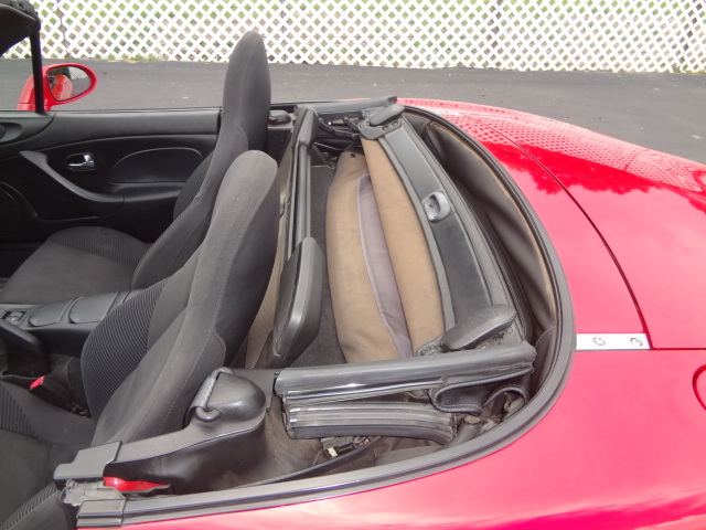 The interior is free from any rips/tears/odors. The seats and carpet are in great shape and have no stains. The car was owned by a non-smoker and is very clean for the year. Everything on the inside of the car works as it should. It has the Convenience Package which includes keyless entry, cruise control, and an upgraded sound system. The convertible top locks in to place easily and folds down in seconds. It comes with a boot cover that is in like new condition.
