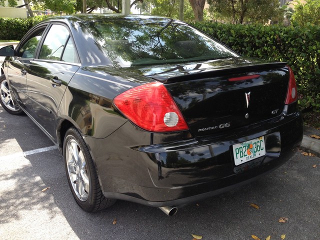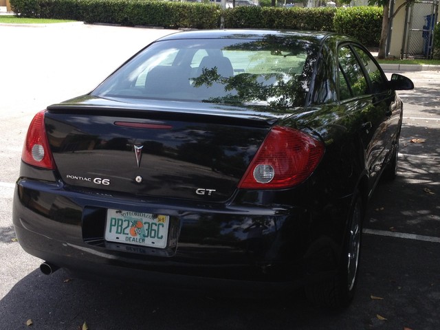 THIS IS A NO RESERVED  AUCTION FOR  A 2006 PONTIAC G6 GT V6  BLACK ON BLACK CLOTH  INTERIOR, COMES WITH A 3.5L V6   ENGINE.  RUNS  AND DRIVES GREAT , COMES WITH AN AUTOMATIC TRANSMISSION WITH   REMOTE KEYLES ENTRY, IN DASH AM/FM RADIO CD PLAYER, PREMIUM ALLOY WHEELS,  POWER SEAT, AUTOMATIC TRANSMITION. PANORAMIC SUNROOF, VERY SPACIOUS AND CONFORTABLE, THE INTERIOR HAS A LOT OF EXTRAS, POWER WINDOW, ICE COLD AC, NO MECHANICAL PROBLEMS, THIS CAR COMES READY TO GO,  VEHICLE HAS JUST 93K,HWY MILES, RETAILS FOR OVER $8K, HERE YOU CAN OWNED IT FOR A LOT LESS!, PREMIUM GT PACKAGE, LOOK AT THE PICTURES FOR SCRATCHES DENT'S ECT. WHAT YOU SEE IS WHAT YOU GET,  READY TO GO! IS IN GOOD CONDITION! WILL MAKE A GREAT VEHICLE, THE PAINT LOOKS  SHINY AND GLOSSY!, WORKS THE WAY IT SHOULD,  IF YOU HAVE ANY QUESTIONS PLEASE LET US KNOW,  WE  WAN'T TO BE AS ACCURATE AS POSSIBLE WITH THE DESCRIPTION THE VEHICLE,VEHICLE HAS BEEN INSPECTED AND EVERYTHING IS WORKING THE WAY IT SHOULD,   HERE IS YOUR CHANCE TO BUY ONE OF THIS VEHICLE FOR A LOT LESS THAN MARKET PRICE, GREAT VALUE,  GREAT DEAL DON’T LET IT SLIP AWAY!  AS FOR THE HISTORY OF THE CAR WE GOT IT ON TRADE IT COMES WITH A FLORIDA REBUILT TITLE DUE TO A LIGHT  FRONT END COLLITION,  THE FRONT  BUMPER COVER, GRILLE,LEFT HEADLIGHT, HAVE BEEN REPLACED REPLACE, DRIVERS SIDE WAS REPAINTED, NOTHING ELSE WAS REPLACED, NO FLOOD DAMAGE, THE DRIVER SIDE AIR BAG ONLY HAS THE COVER NOT THE ACTUAL AIR BAG IN IT IF YOU WANT TO PU THE ORIGINAL AIRBAG YOU CAN BUY ONE ON EBAY FOR ABOUT $175 MAYBE LESS.ITS EASY TO REPLACED. THERE ARE NO WARNING LIGHTS ON THE DASH. IF YOU HAVE QUESTIONS PLEASE ASK BEFORE BIDDING REAR BUMPER SCRATCH LOOK AT THE PICTURES. OTHER THAN THAT THE CAR RUNS AND DRIVES GREAT. READY TO GO. THE SALVAGE INSPECTION HAS ALREADY BEEN DONE HERE IN THE STATE OF FLORIDA AND NOW WE HAVE A FLORIDA REBUILT TITLE WITCH MEANS IS FREEAND CLEAR ALL YOU HAVE TO DO IS REGISTER THIS CAR IN YOUR NAME THAT'S IT. JUST LIKE YOU WOULD ANY OTHER CAR, NO DIFICULT PAPERWORK OR HASSLES. BUY WITH CONFIDENCE, WE CAN ALSO ASSIST WITH SHIPPING AT A VERY COMPETITIVE PRICES PLEASE CHECK WITH US BEFORE USING OTHER SHIPPERS. WE CAN ASSURE  THAT YOU WILL RECIEVED A RED CARPET SERVICE. HASSLE FREE! WE WILL HAVE A QUOTE FOR YOU IN JUST MINUTES JUST PROVIDE US WITH YOUR CITY AND ZIP CODE.  OR  CALL US FOR A FREE QUOTE, IF YOU HAVE ANY QUESTIONS PLEASE CALL US, THE ONLY DIFERENCE BETWEEN THIS CAR AND A CLEAR TITLE IS THE PRICE. HERE YOU WILL SAVE THOUSANDS OF DOLLARS. YOU  ARE WELCOME TO COME LOOK AT THE VEHICLE BEFORE BIDDING AND MAKE ANY INSPECTIONS BEFORE THE BIDDING! WE ARE OPEN 7 DAYS FROM 9AM TO 7 PM, BUYER RESPONSIBLE FOR VEHICLE INSPECTION. SATISFACTION GUARRANTEE! THAT SYMPLE! NO IF OR BUTS! IF YOU COME HERE AND  THE CAR ITS NOT AS DESCRIBED YOU DON'T HAVE TO BUY IT! WE ARE CONFIDENT ON WHAT WE SELL AND STAND BEHIND IT 100% BID WITH CONFIDENCE! CALL US IF YOU HAVE ANY QUESTIONS! GOOD LUCK! AND HAPPY BIDDING! PHONE 786-247-0918,  OR E-MAIL AT FINECARS19@YAHOO.COM