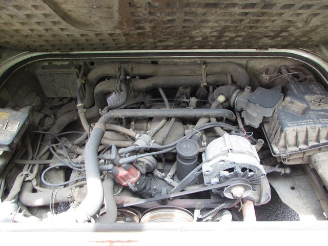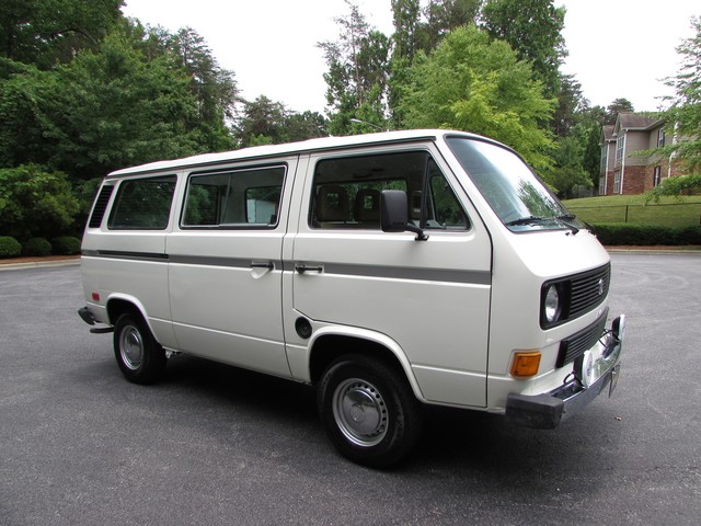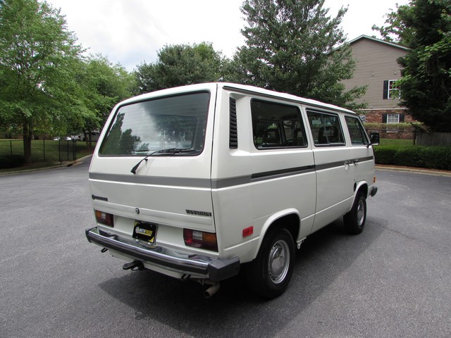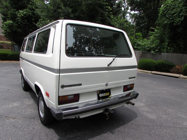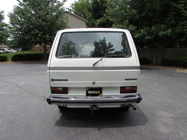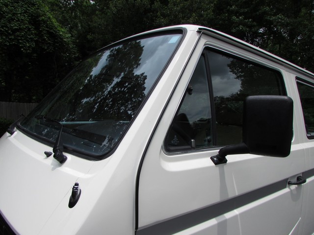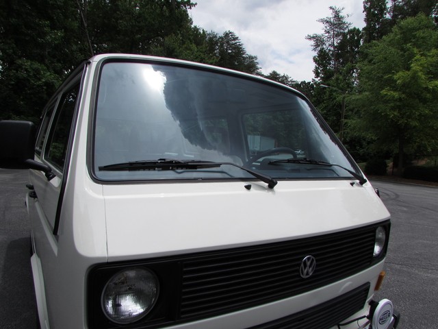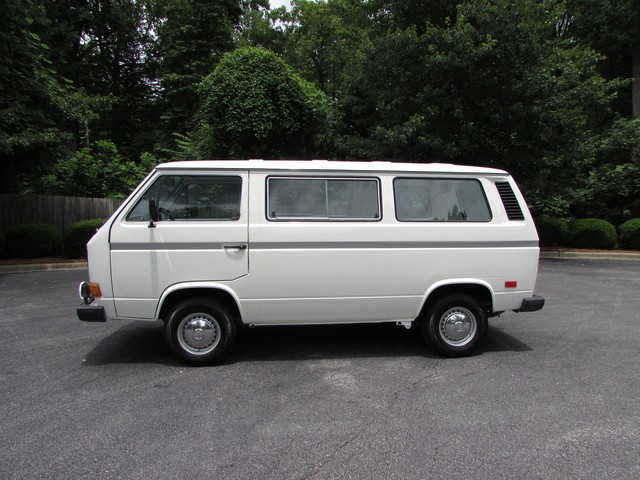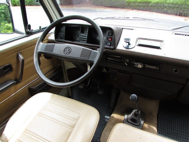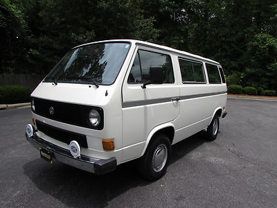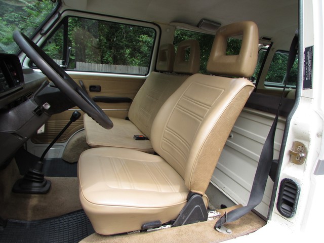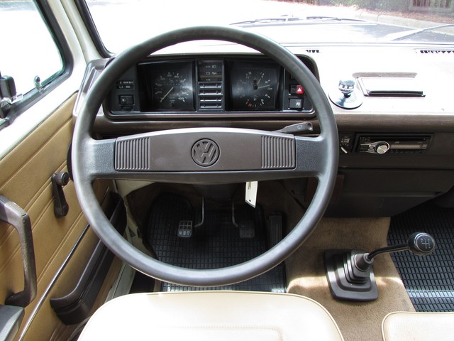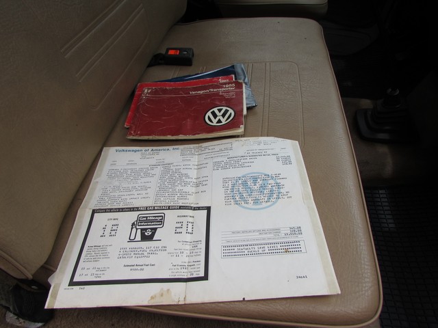This Vanagon is an uncommon model a - a non walk through, eight seater with no power steering or a/c. The only options were the rear wiper (which is nice to have) and radio prep. We have the original window sticker and books. It is Pastel White with a tan vinyl interior. The lack of power steering and a/c greatly simplifies the engine compartment and eliminates 2 items that commonly need repairs.