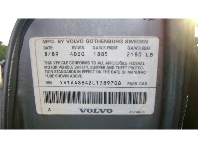 UP FOR OUR NEXT NO RESERVE AUCTION IS THIS VERY NICE 1990 VOLVO 240 SEDAN DL WITH LOW 114K MILES, 1 OWNER, SMOKE FREE, CLEAN, AT NO RESERVE. THIS CAR IS OVERALL IN GOOD CONDITION INSIDE AND OUT. THE EXTERIOR SHOWS NO MAJOR DENTS, DINGS OR SCRATCHES. THE INTERIOR ALSO SHOWS NO SIGNS OF ABUSE, (SEE ALL PICTURES FOR MORE DETAILS.) THE ENGINE RUNS STRONG AND THE TRANSMISSION IS SMOOTH. THE CAR WILL BE A STEAL AT NO RESERVE, SO BID WITH CONFIDENCE!!!