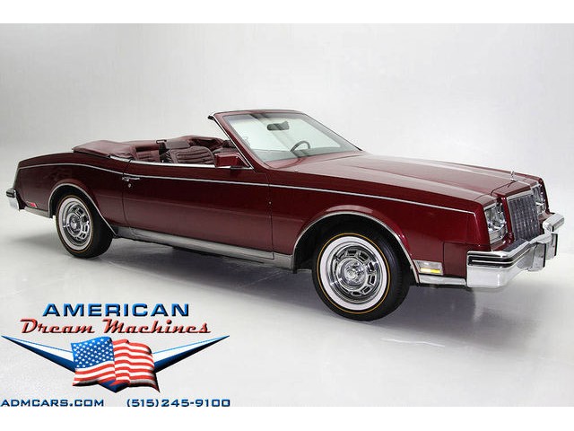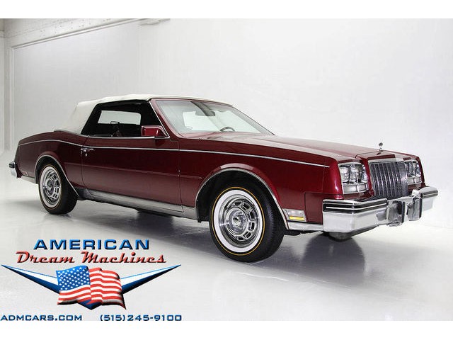 BEAUTIFUL FIREMIST RED 1983 BUICK RIVIERA. BEST SELLING GENERATION OF RIVIERA EVER. THIS ONE IS RARE WITH ONLY 1750 CONVERTIBLES MADE THIS YEAR AND ONLY 400 OF THOSE WERE RED. IT HAS A WHITE TOP MATCHING RED LEATHER INTERIOR AND ROLLS ON VOGUE WIDE TRAC TIRES. This 80's luxury car feels smooth and runs great with all of the power options you would expect. It has a 4.1 V6 engine coupled with an automatic transmission. Its an affordable luxury convertible with collectability and style to cruse the summer with the top down (or up if you prefer air conditioning). (((PLEASE CALL FOR DETAILS))) American Dream Machines is located in the center of the Heartland in Des Moines Iowa. We are one of the largest full service classic car dealerships in the Midwest. We specialize in American Muscle cars with integrity. We usually have at least 100 cars in stock. Please call 515-245-9100 and we will be happy to tell you about the cars. Des Moines largest classic car dealership, ''Specalizing in American muscle cars with Integrity.''