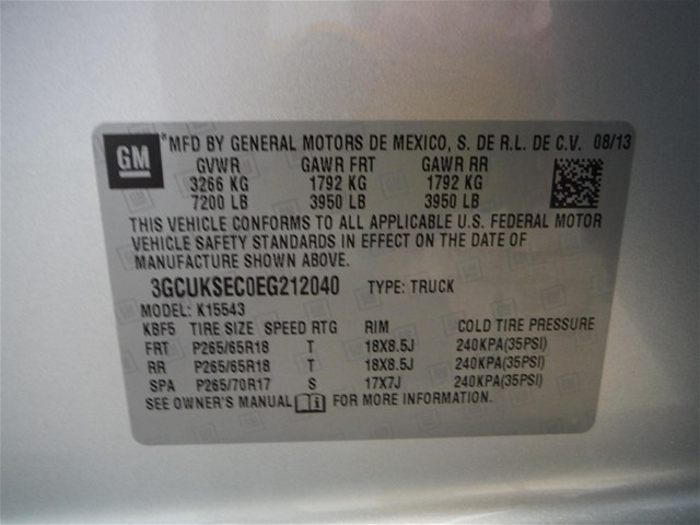 • VIN: 3GCUKSEC0EG212040