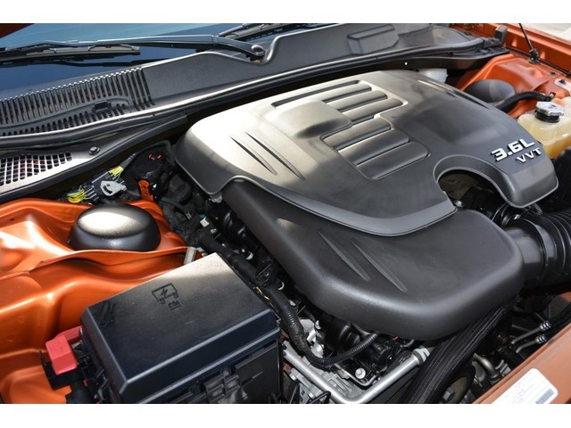 The Dodge Challenger Coupe is powered by a 3.6L V6 engine that produces 305 Horsepower @ 6350 rpm and 268 ft-lbs of Torque @ 4800 rpm.  It's estimated to get 18 MPG in the city and 27 MPH on the highway.  Save gas in style with this affordable sport coupe.