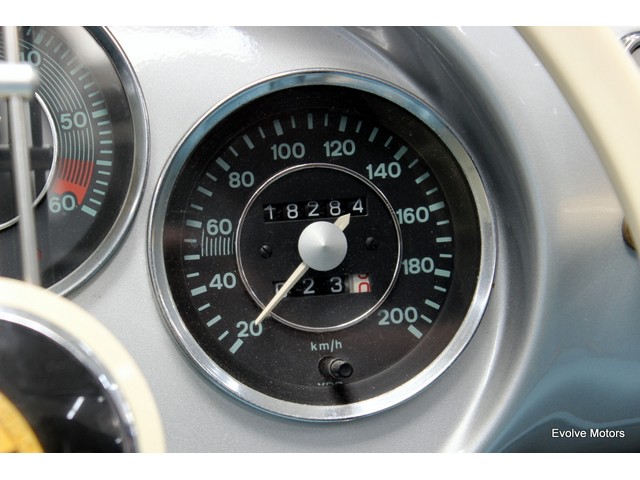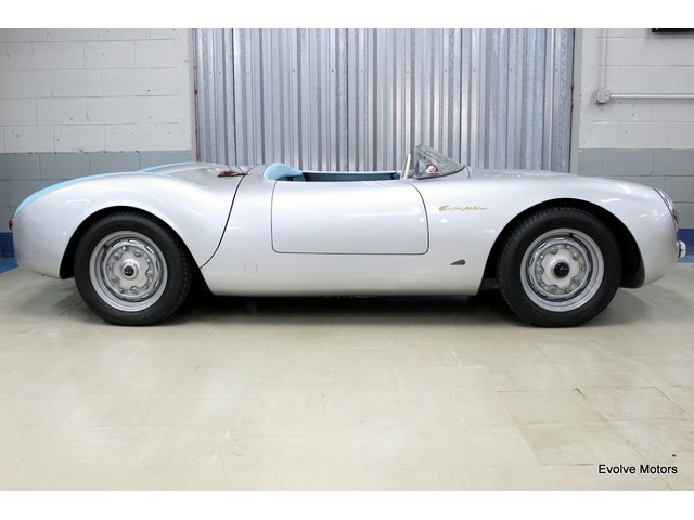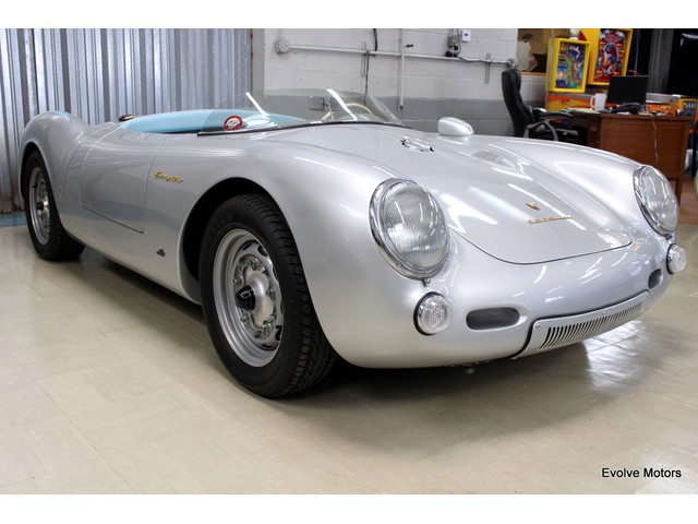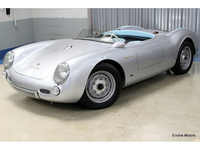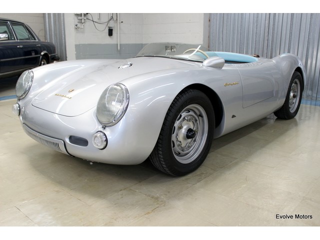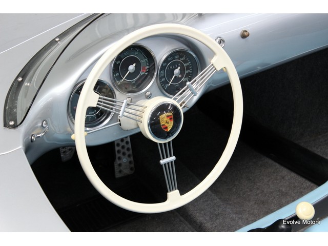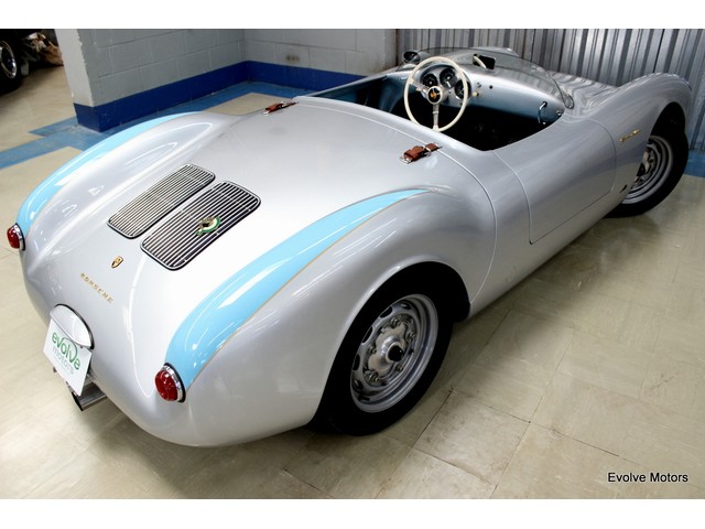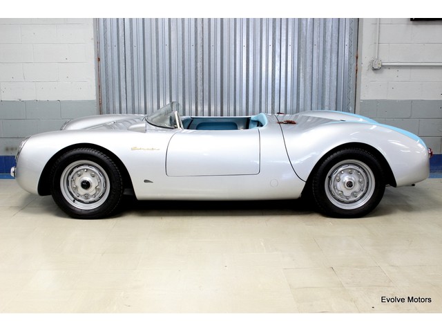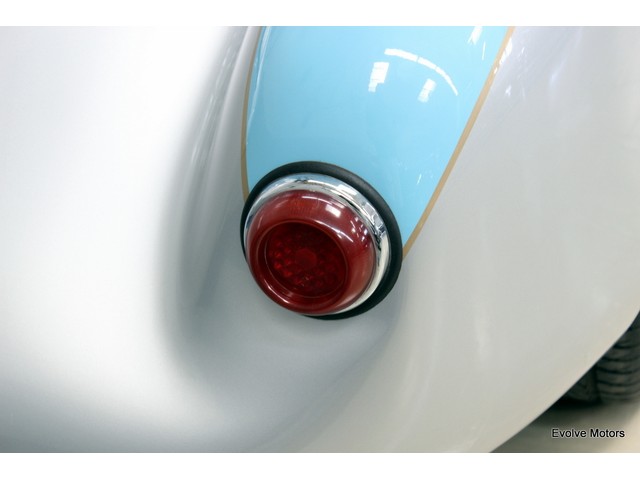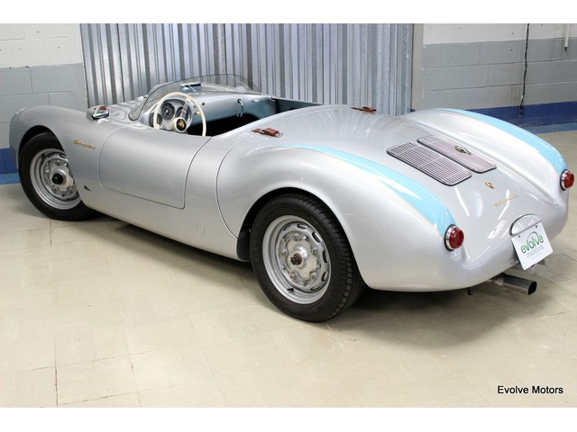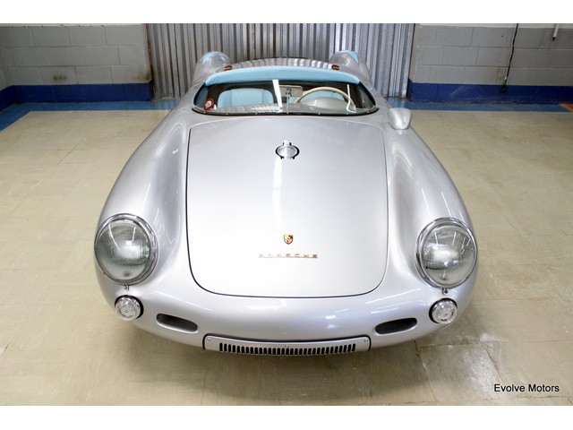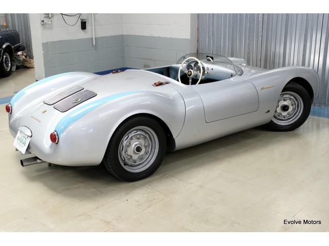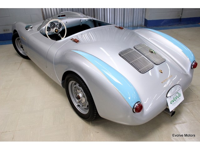 Formerly owned by a friend of Jay Leno's, this California 550 has been blessed by the best. Built well, but similar to other cars Chuck Beck was producing, our 550 was later worked on by some of the best in the business. Car number 484 (B) is finished in the iconic Silver paint and complemented by the baby blue “darts”, modeled after the 550 Spyder that Jerry Seinfeld owns. The color combination is striking, offset by the gold pin striping that surrounds the blue darts. When it comes to making these Spyders your own, the possibilities are endless. The previous owner sourced original style 550 turn signal lenses, side view mirror with faring, license plate cover, leather clam straps, Wendler badges, and Porsche scripts & crests which all make for an authentic feel. The paintwork is exceptional from front to back, showing little to no blemishes. The interior on this 550 is equally as nice and features an original style, basket weave material that matches the baby blue darts and the seats are original style 550 sport seats that have plenty of room to spare, thanks to the recessed firewall. The steering wheel is a real Porsche Banjo steering wheel and correct Porsche center crest.
