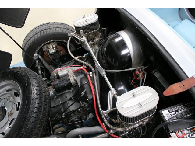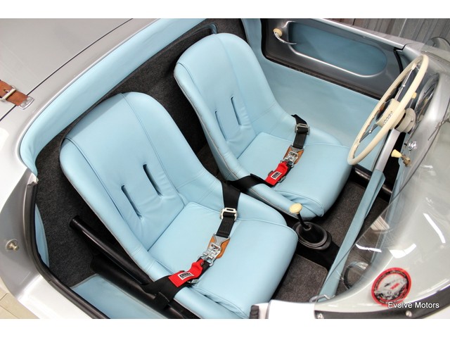 Lift the clam shell bonnet to reveal the guts of this 550. With many different engine variations available, this 550 is the perfect blend of power and speed. Starting with a 1.2 liter VW engine, this motor has been built up to the tune of 2.2 liters and is adorned with dual Weber carburetors and a custom exhaust. All this work together produces about 175 horsepower and is an absolute blast to drive.  4 wheel discs help get this Spyder stopped but are dressed up with original style drum brake simulators and the car also features KYB suspension dampening. These cars were meant to be driven since the original is fairly unobtainable for most people. Don't miss you chance to buy this completely turn key 550 Spyder! The car is very well built and has the best of everything, including the stunning blue darts. Give us a call today to setup a showing right now!!