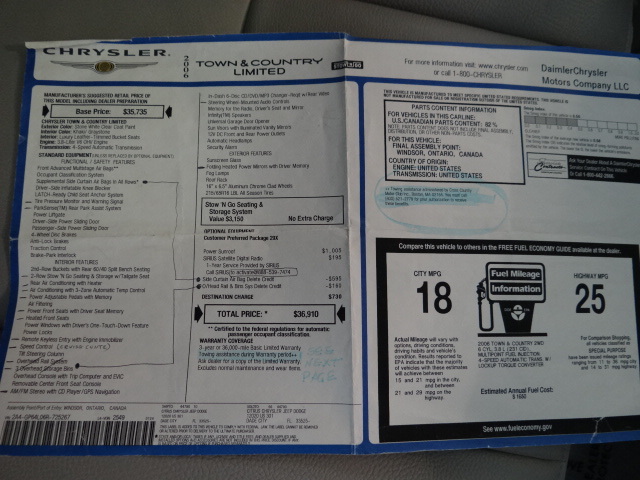 YOU ARE VIEWING A SUPER LOW MILE TOP OF THE LINE 2006 CHRYSLER TOWN AND COUNTRY LIMITED LONG WHEEL BASE (LWB) STOW N GO! NO RESERVE AUCTION! ONLY 36,789ACTUAL MILES! FLORIDA OWNED AND RUST FREE!! AUTOCHECK CERTIFIED! NO ACCIDENTS (REPORT CAN BE EMAILED) ONLY ONE OWNER SINCE NEW! THIS ONE HAS IT ALL! FACTORY MOONROOF, PARK DISTANCE CONTROL, CD CHANGER, HEATED SEATS, POWERED SEATS, FOOT PEDAL ADJUSTMENT, TRACTION CONTROL, LEATHER SEATS, GPS NAVIGATION, SATELLITE RADIO, CAPTAIN CHAIRS, POWER TRUNK LID, POWER SLIDING DOORS, FOG LAMPS AND MUCH MUCH MORE! THIS LUXURY VAN IS AMAZING! ALWAYS FLORIDA OWNED! NO RUST! NO FAMILY USE! VEHICLE IS LIKE NEW! SMELLS NEW! NON SMOKER AND VERY CLEAN INSIDE! BODY IS IN EXCELLENT CONDITION! SOME MINOR BUG MARKS ON FRONT BUMPER. BUT OVERALL IN EXCELLENT CONDITION! DONT MISS OUT ON THIS RARE FIND! IT WILL NOT BE EASY TO FIND ANOTHER ONE LIKE THIS! ESPECIALLY THIS CLEAN AND WITH THESE LOW MILES AND COLOR COMBINATION! KBB PRICING SHOWS $14,595.00 VALUE! THIS ONE IS SET AT NO RESERVE FOR 7 DAYS! HIGHEST BIDDER TAKES IT! IF YOU HAVE ANY QUESTIONS OR FOR SHIPPING RATES PLEASE CALL US AT 305-345-8318 OR 305-200-9433. FREE AIRPORT PICK UP!