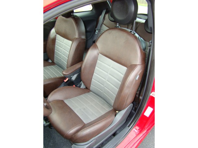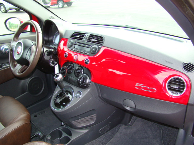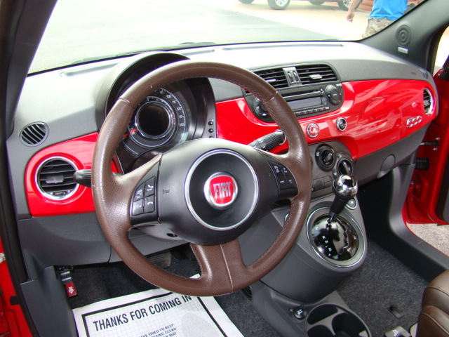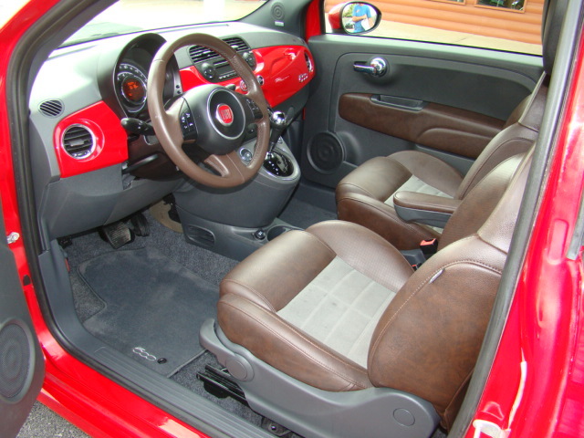 This is a beautiful 2012 Fiat 500 Sport, 28,000 miles, 4 cylinder, red with brown leather, 6 speed automatic, Abarth front fascia alloy wheels, ground effects, LED foglights, spoiler, tilt, power windows, leather power steering with audio controls, power door locks, power mirrors, BOSE cd player, dual airbags, air conditioning, ABS, blue tooth, mp3 input, keyless entry, and floor mats.