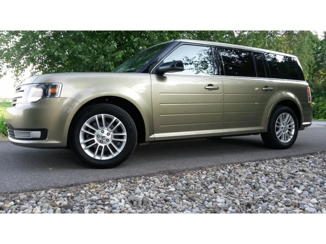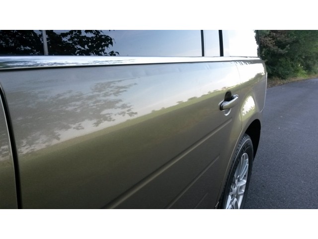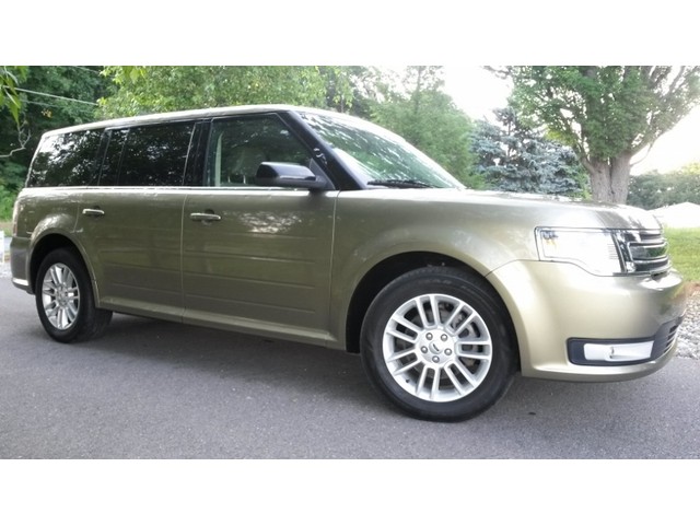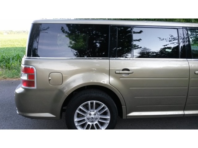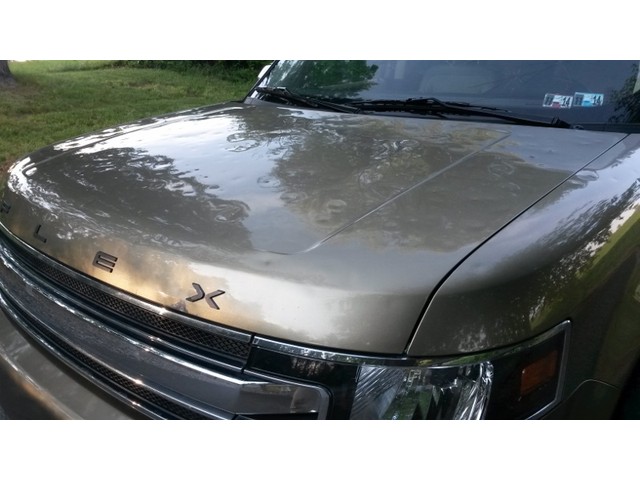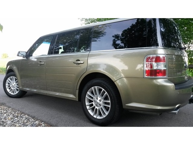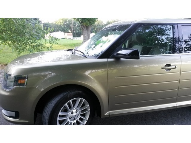 FOR SALE 2013 FORD FLEX SEL with only 38k miles.  Metallic green exterior with a two tone tan/black interior.  This car runs and drives great with no mechanical issues. The only thing wrong with this car is the hail dents on the roof, hood, and trunk. Look closly at the pictures I tried to show all the dents that I found on the car. We are selling the car as is just how we bought it from the insurance company. These dents will in no way affect the performance of the car, making it as good a car as any other on the road. Some of the features include 2 keyless entry remotes, Ford Sync, steering wheel controls, dual climate control, rear climate contol, power folding 2nd row seat, 7 passenger with 3rd row seating, trip computer, and parking sensors.  Take a look at the interior pictures.  I tried to include detailed pictures of all the features.  Sold with a PA Salvage title. Thanks for looking and happy bidding =)
