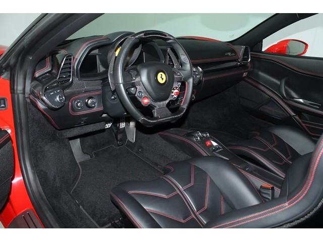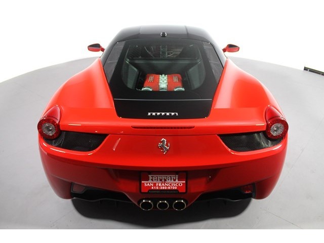 This 458 Italia was delivered here at Ferrari of San Francisco with all of the maintenance and updates handled by our factory trained tecnical staff. It has additional Factory warranty good until 12 -2014 with additional length available. The optional Equipment items are: Two Tone (roof) Paint option, Carbon Fiber Driver Zone + LEDS, Carbon Fiber Dashboard Inserts, iPod Connection, "Scuderia Shields" Dimming Mirrors, Homelink, Sport Sill Cover, 20" Dark Painted Rims, Yellow Rev Counter face, Carbon Fiber Racing Seats - Large, Special Stitching in Rosso.