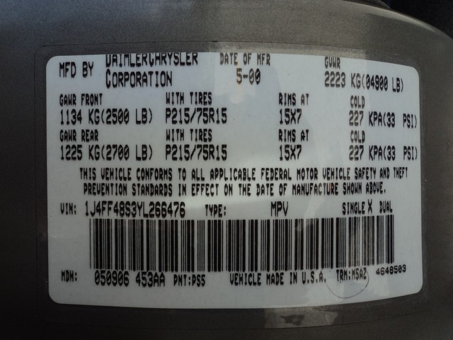 2000 Jeep Cherokee 1J4FF48S3YL266476