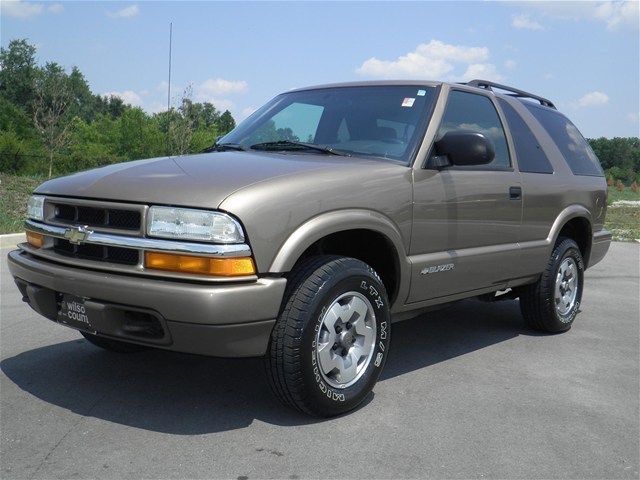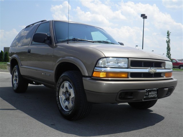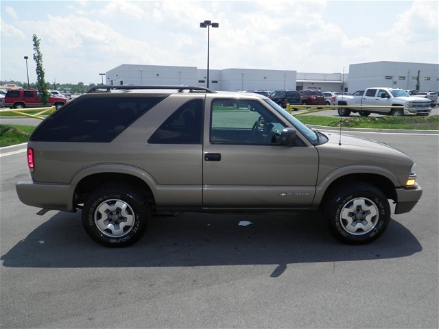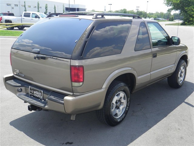 2004 CHEVROLET BLAZER 2DOOR LS 4X4 SUPER CLEAN LOCAL TRADE MOCHA METALLIC, ALLOY WHEELS, 4.3 V6, CLASS III TOWING PACKAGE, REAR PRIVACY GLASS, WELL MAINTAINED AND JUST SERVICED AND INSPECTED, ON THE FLY 4X4, CLOTH TRIM, POWER MOONROOF, JUST OVER 88,000 MILES.